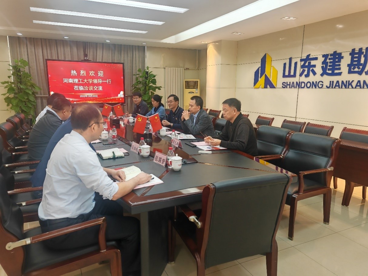 常玉光介绍了河南理工大学和我院基本情况及近年来在人才培养、科学研究、社会服务等方面取得的成绩,并对山东建勘集团有限公司的在科技创新和行业发展方面的突出贡献给予了高度评价。他表示,我院与山东建勘集团有限公司有着广泛的合作基础,希望双方进一步加强交流与合作,通过开展联合科研项目、共建实践基地等更好地发挥双方的优势,实现共赢发展。