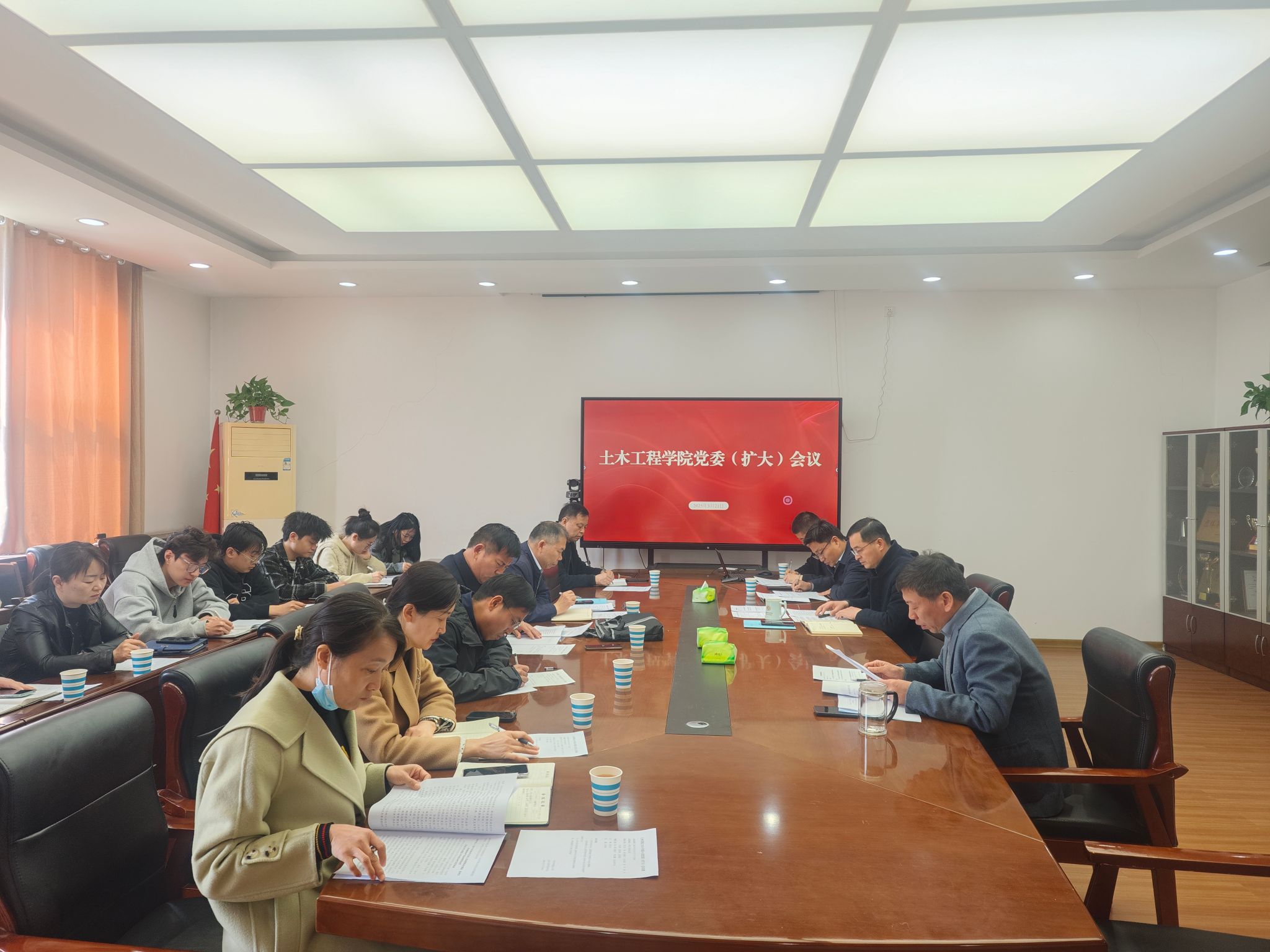 2025年3月21日,土木工学院在学院二楼会议室召开党委(扩大)会议,传达部署深入贯彻中央八项规定精神学习教育工作。学院党委委员、各党支部书记参加本次会议。会议由学院党委委员、副院长赵宇主持。