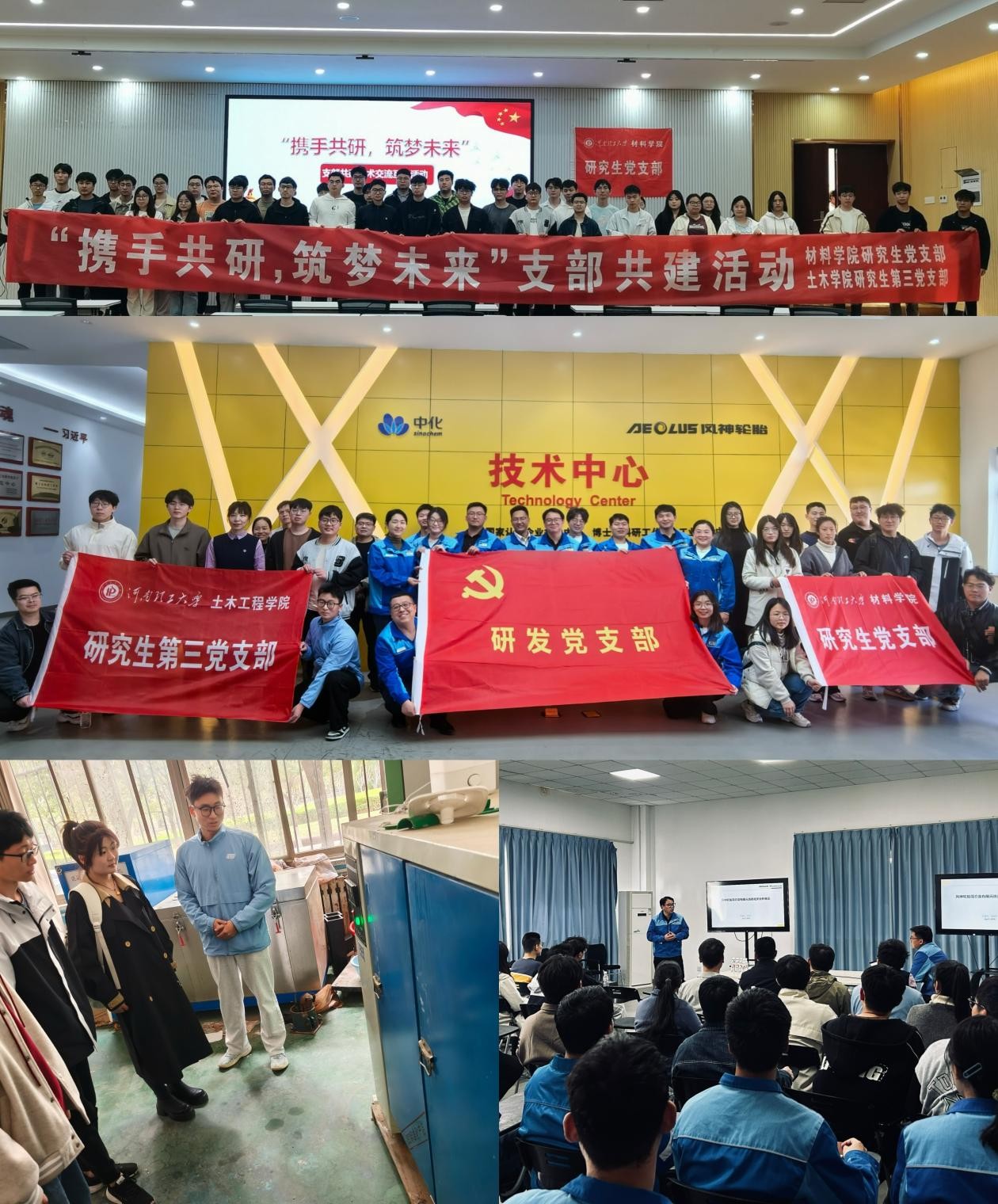 4月1日,两院党支部及教师代表前往焦作市风神轮胎厂开展实践学习,深入研发中心,了解轮胎制造工艺流程与技术创新。风神轮胎厂研发部党支部代表围绕“党建引领企业发展”展开座谈,分享基层党组织建设经验,探讨党员在科研创新中的先锋模范作用。交流过程中,同学们积极提问,与企业工作人员就生产技术、职业发展、行业趋势等问题展开深入交流,展现了党建+科研的融合潜力。