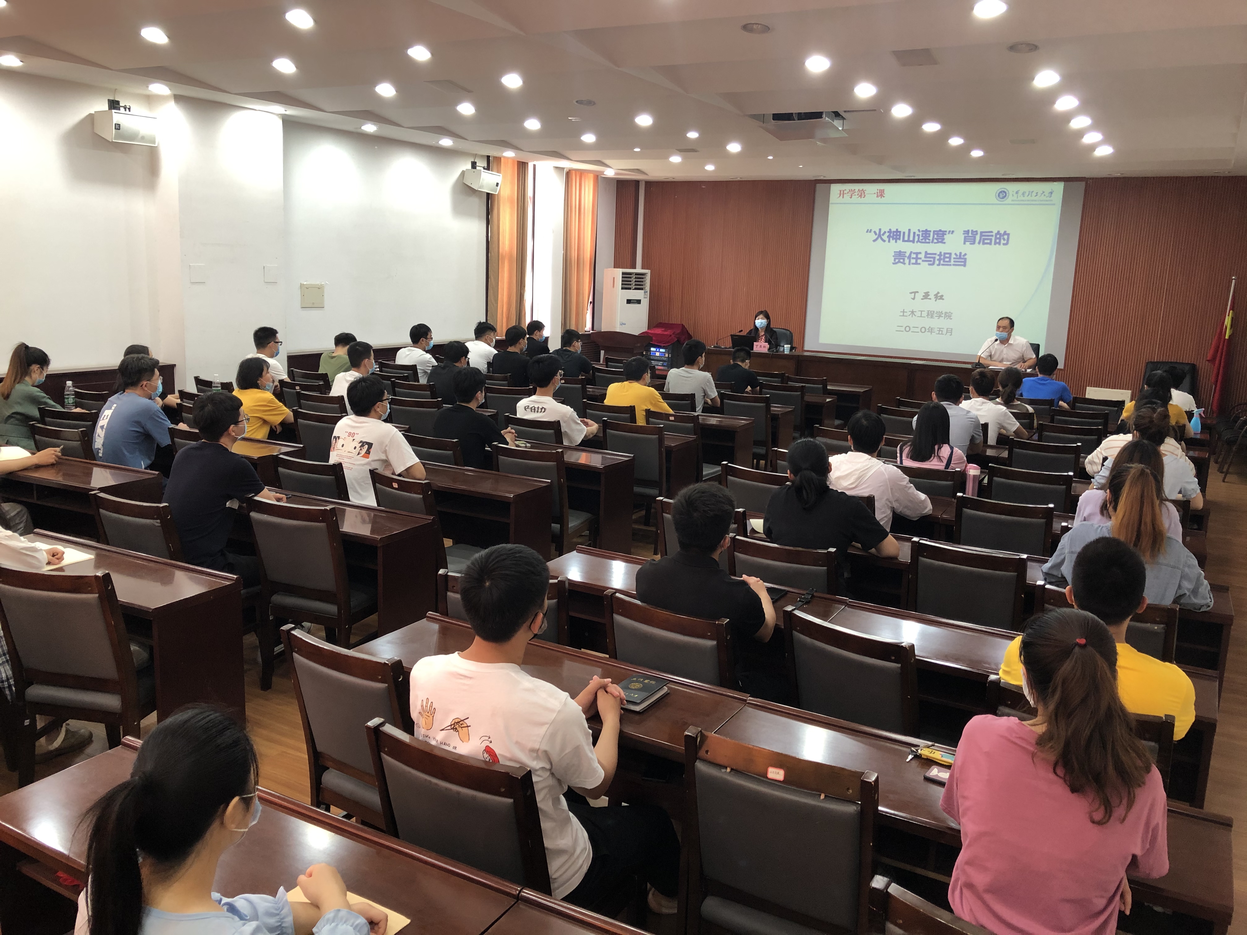 面对疫情大考,为从战“疫”这本无字“教材”中汲取思政养分,确保疫情防控特殊时期的铸魂育人工作有高度、有温度、有深度。5月27日上午,我院50余名返校学生代表在报告厅同上一堂由院长丁亚红讲授的题为“‘火神山速度’背后的责任与担当”开学思政第一课,院党委副书记尹铁军主持。 疫情就是命令,现场就是战场!课上,全体人员一起,为在抗击新冠肺炎疫情中牺牲的医护工作者和去世的同胞默哀三分钟。之后,丁亚红将火神山医院建设的背景和过程作为生动案例和鲜活素材,深入分析了全国一盘棋、集中力量办大事的国家制度和治理体系优势,进而引出关于“火神山速度”的思考和启示,从建造技术的创新、当下中国建筑方式所面临的难题、传统建筑面临的问题、当前我国建筑业形势以及建筑数字化的新机遇等六个方面深度解读了土木专业领域面临的挑战与前景。随后,丁亚红向同学们提出三点期望:一是事不避难,义不逃责。只有懂得责任与担当,大家与小家,才有希望!二是守住人生的底线。无论是疫情当前,还是身处建筑行业中,都不要让利益蒙蔽双眼,不要让欲望吞噬良知。三是敬畏自然,敬畏生命。人类与自然是命运共同体,一荣俱荣,一损俱损!最后,丁亚红谈到,这场疫情让我们看到了全国人民在中国共产党的领导下团结一心、共克时艰的精神风貌,充分体现了中国力量、中国精神和中国速度,生动彰显了中国特色社会主义制度优势! |
