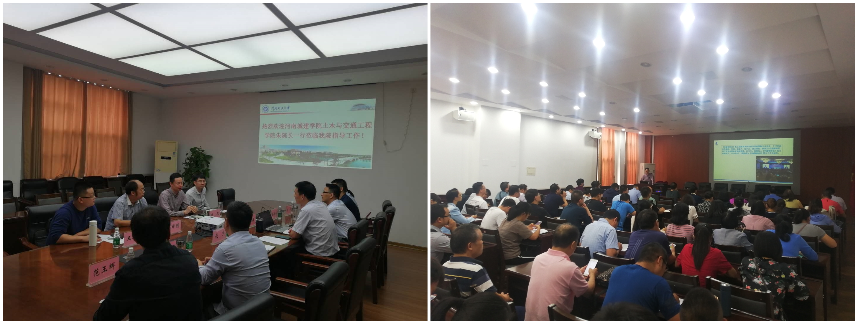 座谈会上,褚怀保首先介绍了学院基本情况,重点介绍了我院土木工程国家级一流本科专业申报情况及土木工程专业评估(认证)工作开展情况,随后河南城建学院土木与交通工程学院朱院长介绍了该院基本情况及此次调研工作主要内容,最后双方与会人员进行了深入交流,整个过程热烈而高效。