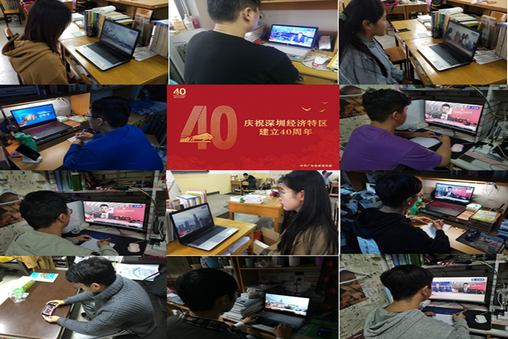 10月14日上午10点,深圳经济特区建立40周年庆祝大会在广东省深圳市隆重举行,我院以支部为单位通过网络直播进行收听收看,学习贯彻习近平总书记在大会上发表的重要讲话,热议深圳40年取得的巨大成就,为祖国喝彩,为深圳喝彩。