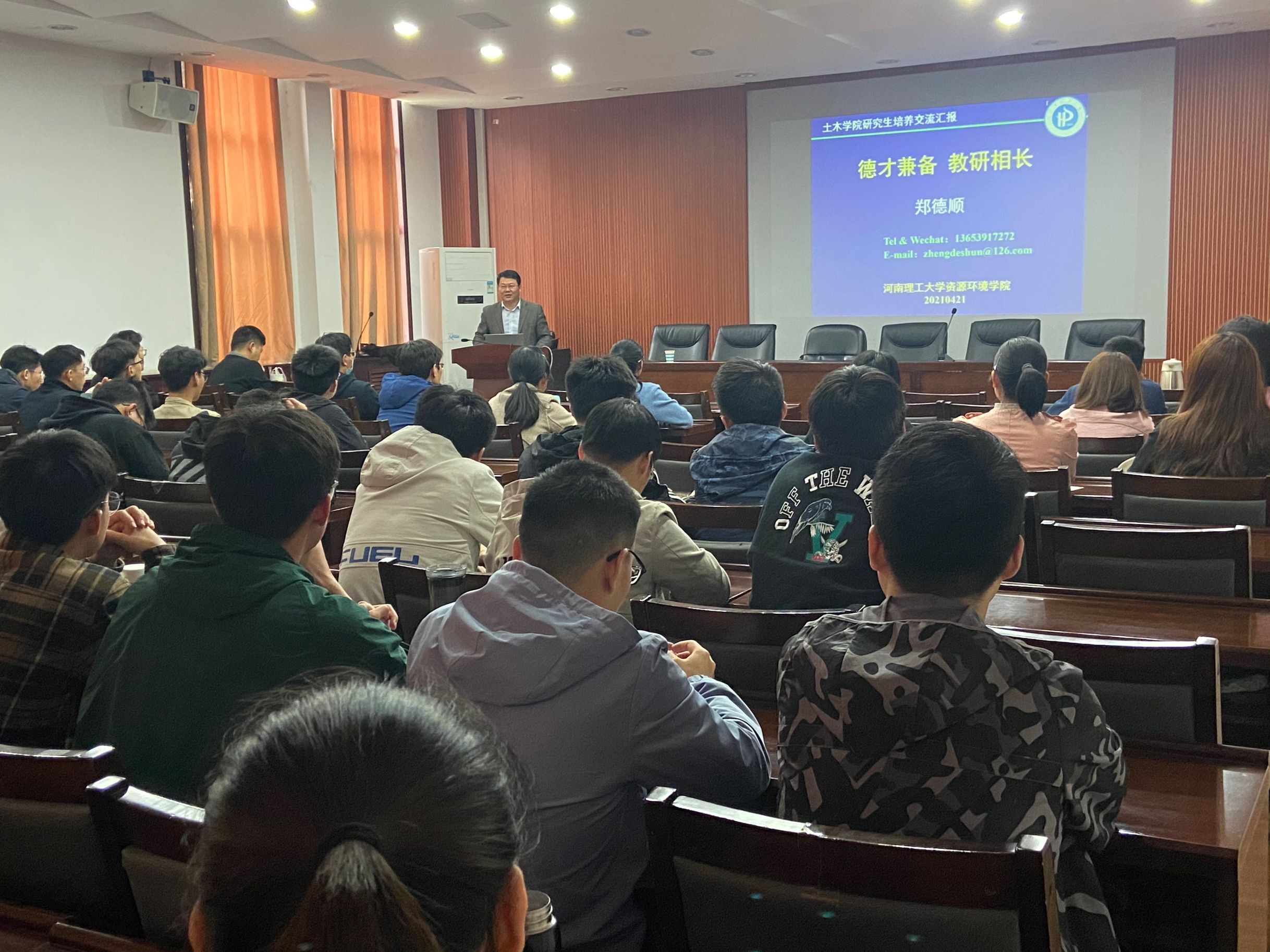 为了强化研究生培养过程管理,提高研究生培养质量,我院于4月21日下午邀请资环学院郑德顺教授在学院学术报告厅作研究生培养专题报告。报告会由学院副院长梁为民主持,学院新遴选研究生导师及全体研究生参加了会议。