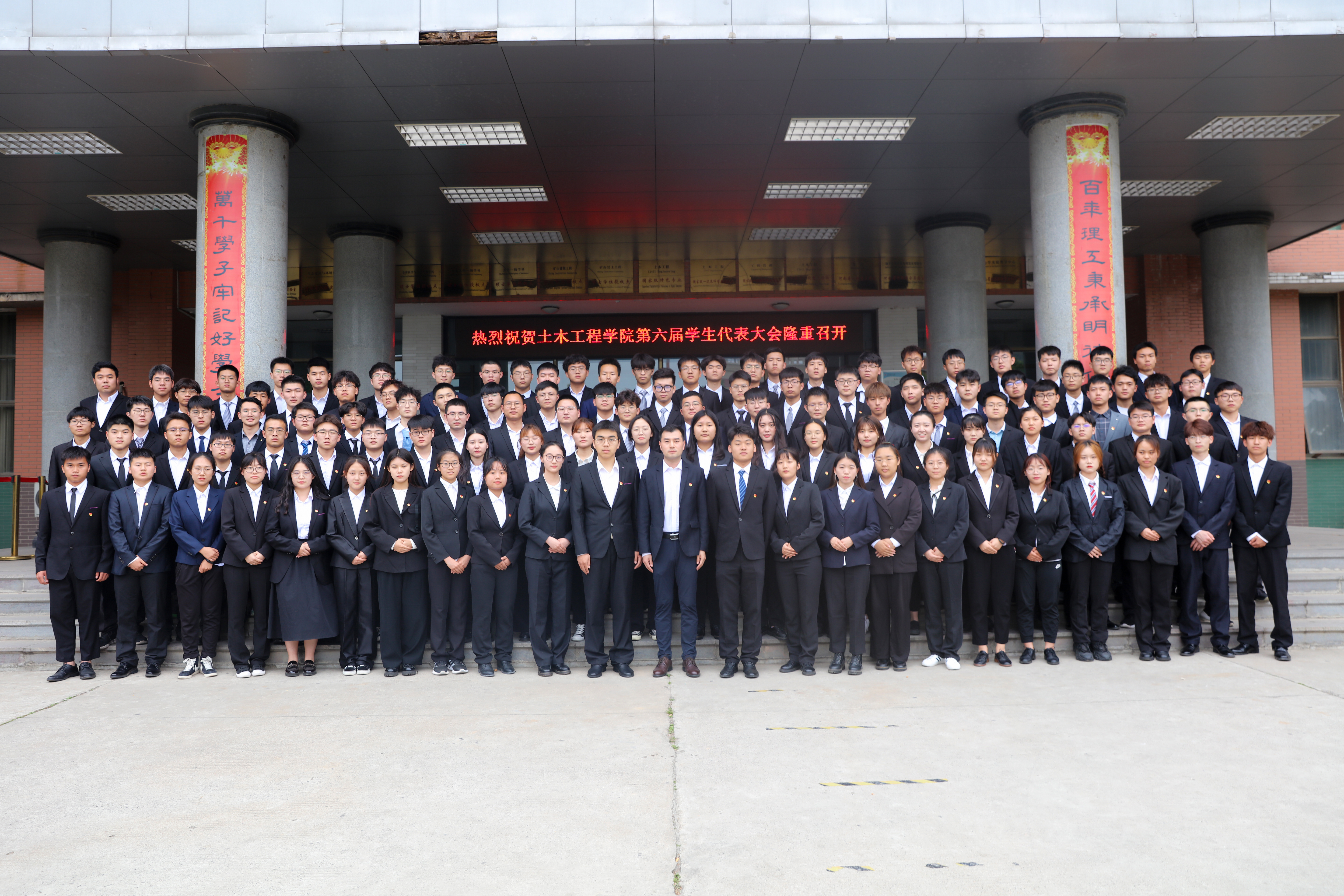 在《河南理工大学校歌》振奋人心的旋律中,我院第六届学生代表大会和研究生代表大会完美闭幕!会后,全体参会成员在院楼前合影留念。本次会议的胜利召开对日后学生工作的开展具有重要的指导意义。相信我院学子能以此为指引,提高自身思想道德素质和科学文化素养,共同谱写我院的新篇章。
