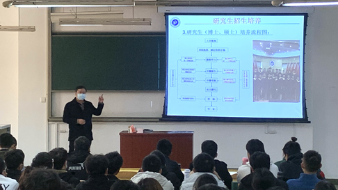 报告会上,梁为民教授首先向同学们介绍了研究生培养流程及注意事项,通过自己多年的教学与科研经验,向同学们讲解了文献阅读、论文写作、科研创新的亲身经验,供同学们参考学习。粱为民教授在会上提到,习近平主席强调,研究生教育在培养创新人才、提高创新能力、服务经济社会发展、推进国家治理体系和治理能力现代化方面具有重要作用。梁为民教授多次强调创新性的重要性,并通过引用翟天临、黄禹锡等学术界发生的学术不端事件,深刻阐明了学术不端行为的危害以及对学术环境造成的不良影响,对科技创新与学风建设问题进行了深入浅出的讲解。最后,梁教授对我院研究生在求学、科研道路上的进步表示殷切期盼,并表示对需要帮助的同学,可以随时进行线下交流。