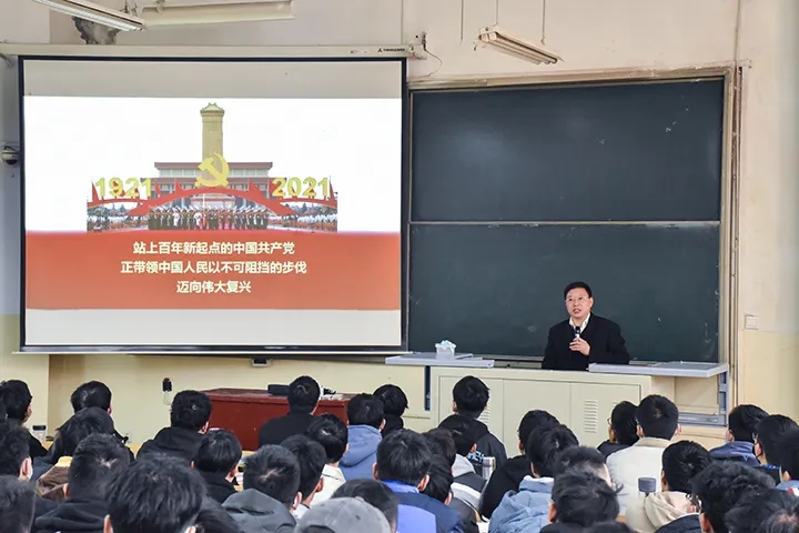 杨小林重点围绕学习习近平总书记“七一”重要讲话精神,分别从“中国共产党的百年奋斗历程”“中国共产党为什么能”“百年理工的奋斗担当”“争做具有奋斗担当精神的新时代优秀大学生”等四个方面,结合大量生动鲜活的事例,为同学们上了一堂生动的爱国主义教育课。