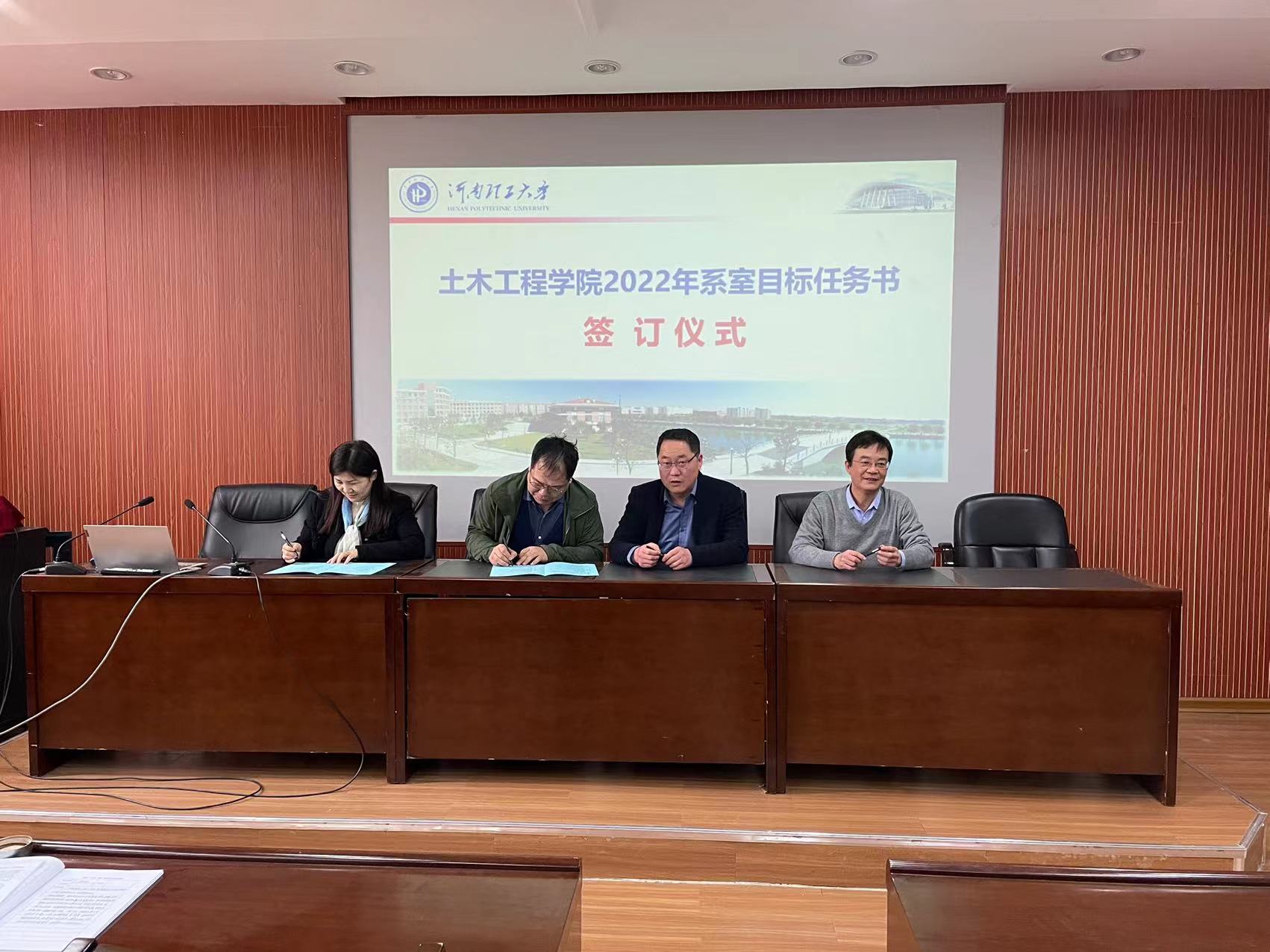 会上,院党委书记刘希亮和院长丁亚红分别与各系室负责同志签订了《2022年度工作目标任务书》。丁亚红指出,新学期开学以来,学院多次召开专题会议,贯彻十九大精神,锚定十四五目标,在自下而上多维度征求意见的基础上确定了本年度的工作重点。本次目标任务书的签订,进一步明确了系室工作科学化、制度化、规范化的标准,是实现学院工作重心下移的重要举措,也是发挥系室在教学、科研和学科专业建设等方面作用的有效方式。学院上下要协同一心,推动目标落实,加强内涵建设,促进学院全面发展。