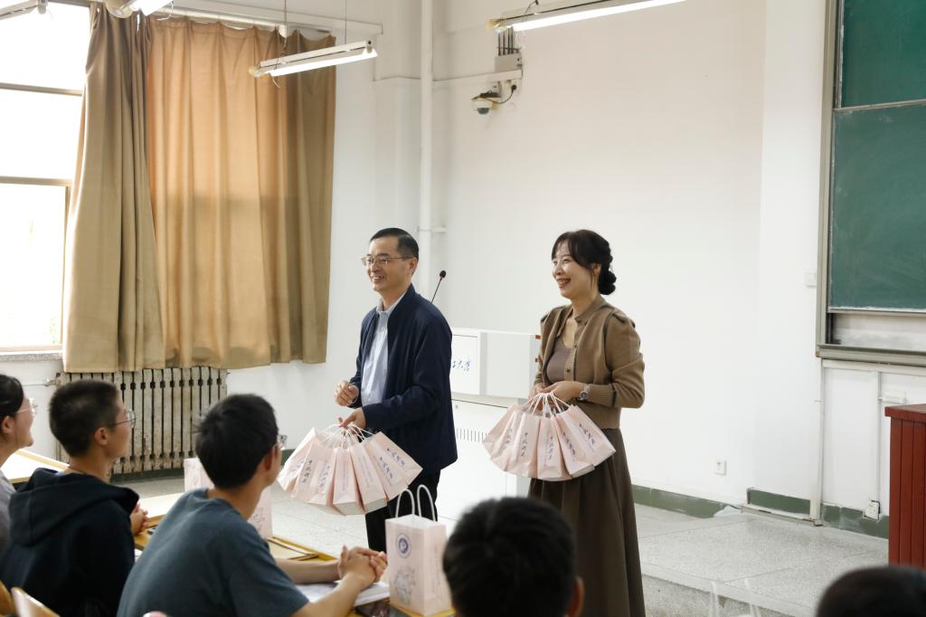 金秋送爽,丹桂飘香。为了使2023级新生在中秋佳节感受到学院的关怀与温暖,9月26日下午,我院党委书记常玉光、院长丁亚红、党委副书记杨波,在新生辅导员的陪同下走进教室、走进宿舍、走近学生,给2023级新生发放带有学校徽标的特别月饼礼盒,将关怀送到每位同学的手中。