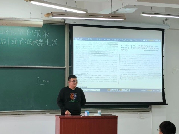 接着,李延眭同学从力学学科方面向同学们科普了力学和物理学的区别,纠正同学们对力学的普遍错误认知,探究力学“真面目”,罗列了我校力学专业课程的相关知识,让新生们更深入的了解未来几年要学习的力学类课程。