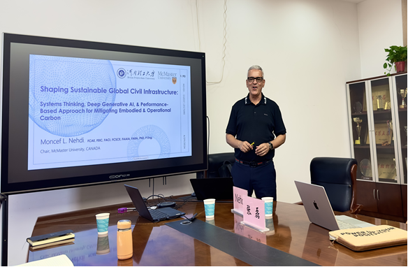 6月29日上午,应我院邀请,加拿大工程院院士、加拿大麦克马斯特大学工学部部长Moncef L. Nehdi教授为我院师生作了题为《Shaping Sustainable Global Civil Infrastructure: A Systems Thinking Deep Generative Al, and Performance-Based Approach for Mitigating Embodied and Operational Carbon》的学术报告,报告由我院副院长余永强主持。
