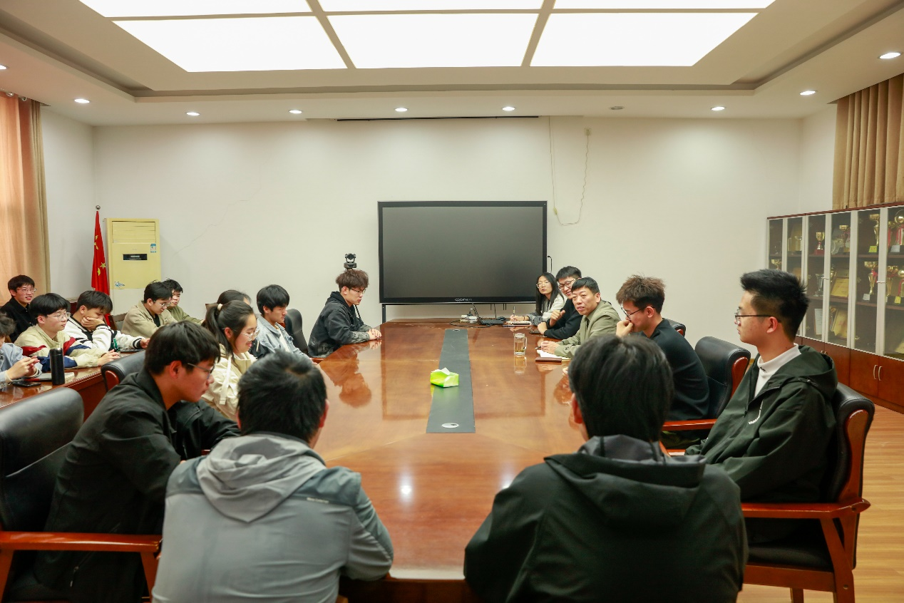 4月9日,在学院二楼会议室,副院长余永强与地下2303班学生座谈交流,2023级辅导员参加座谈会。