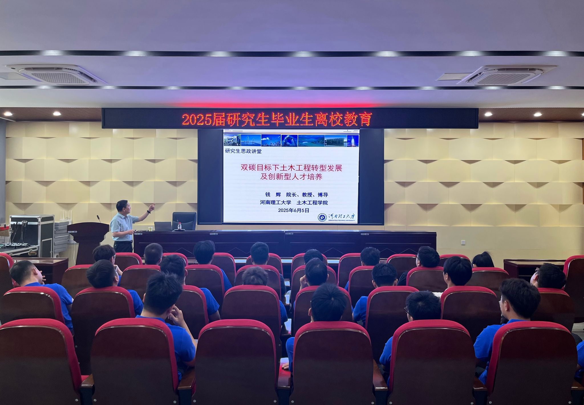 为深入贯彻落实立德树人根本任务,加强毕业生思想政治教育,6月5日下午,2025届研究生毕业生离校教育活动在我院101会议室成功举办。本次活动由钱辉院长主讲,全体研究生毕业生参加。