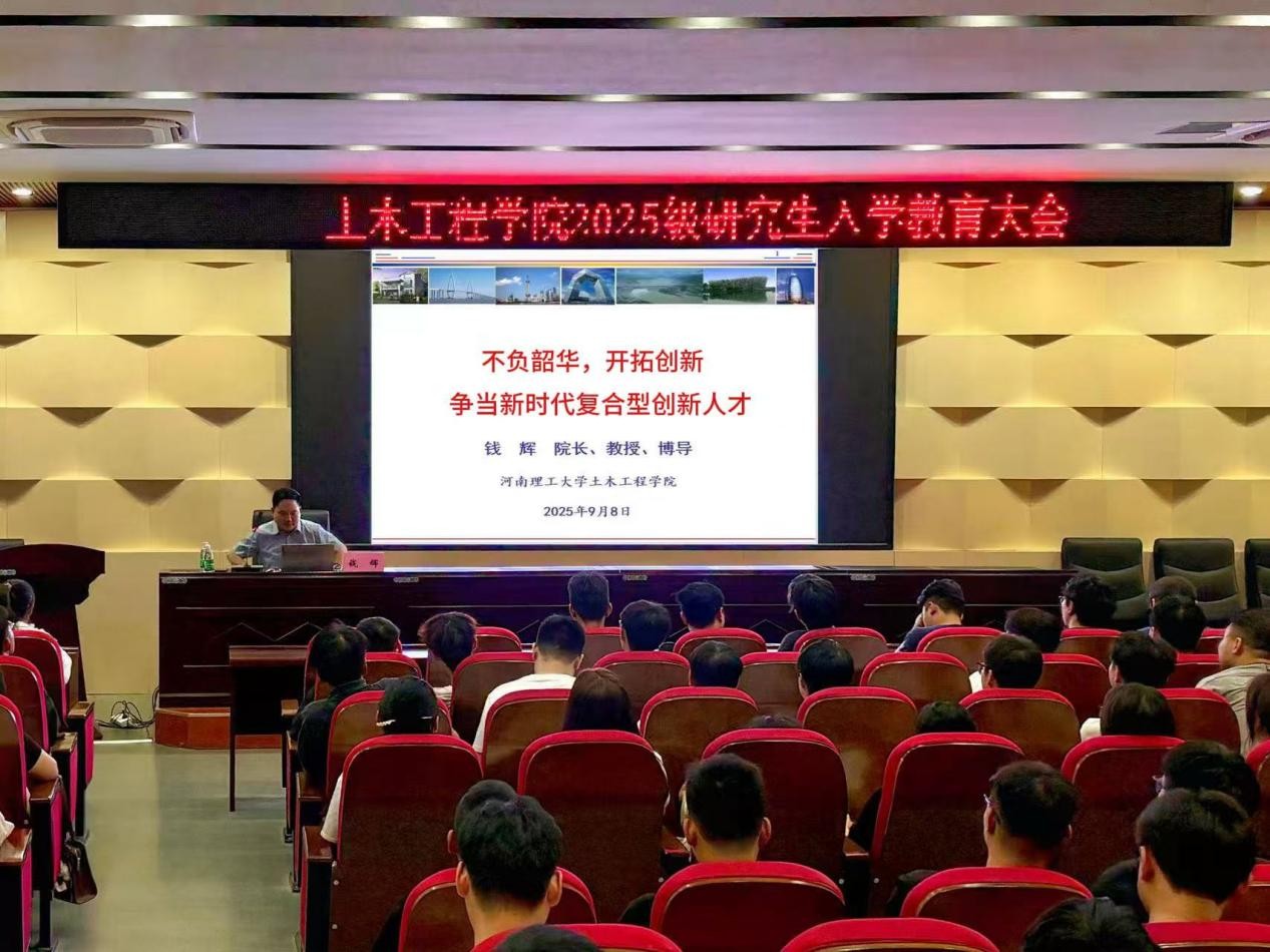 2025年9月8日,我院院长钱辉为2025级研究生新生带来了一场主题为“不负韶华,开拓创新 争当新时代复合型创新人才”的专题讲座。学院2025级研究生全体150余人参加报告会。