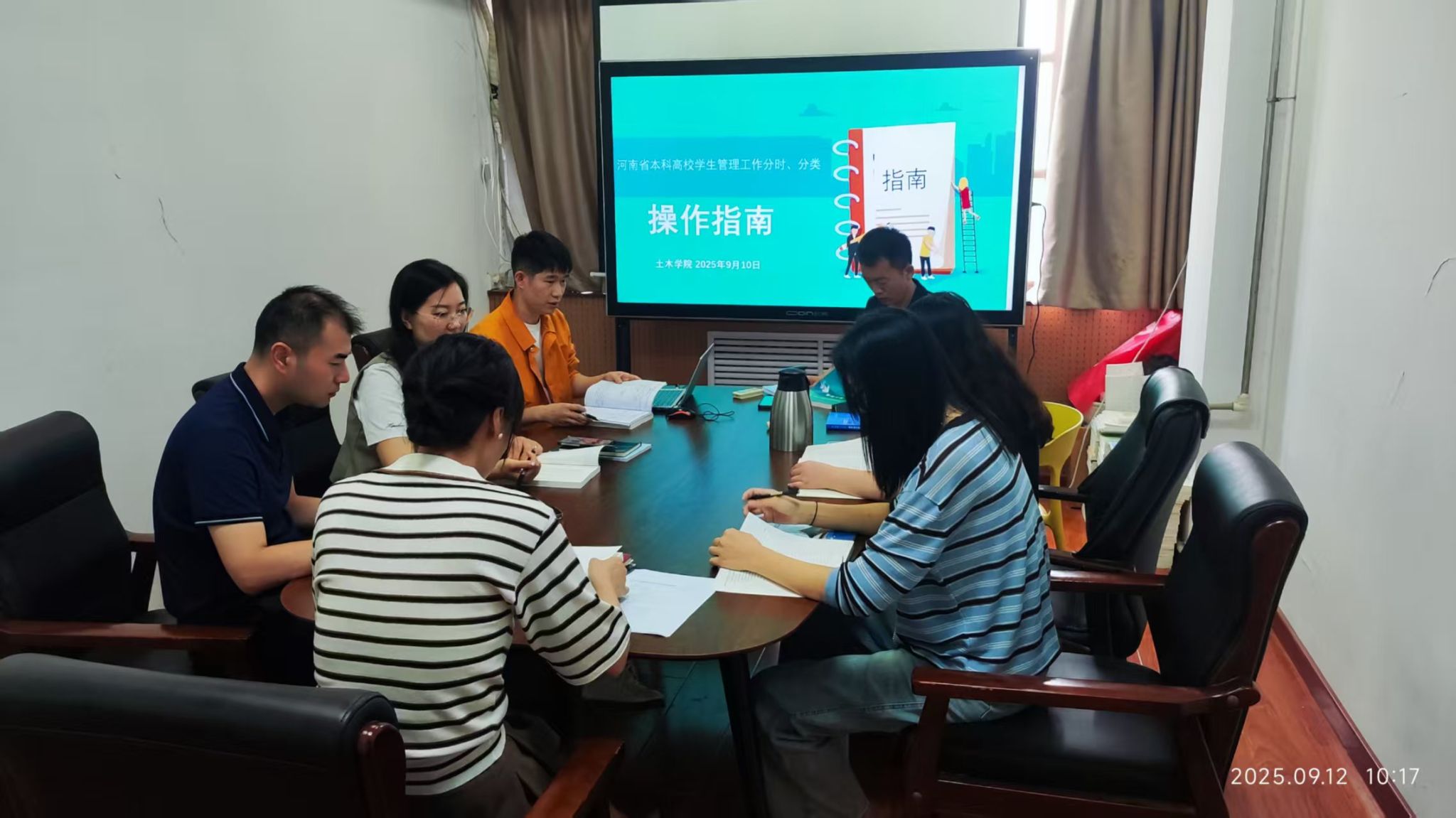 为进一步提升学生管理工作的科学化、精准化水平,我院于9月10日组织全体辅导员开展《河南省本科高校学生管理工作分时、分类操作指南》专题学习研讨会。