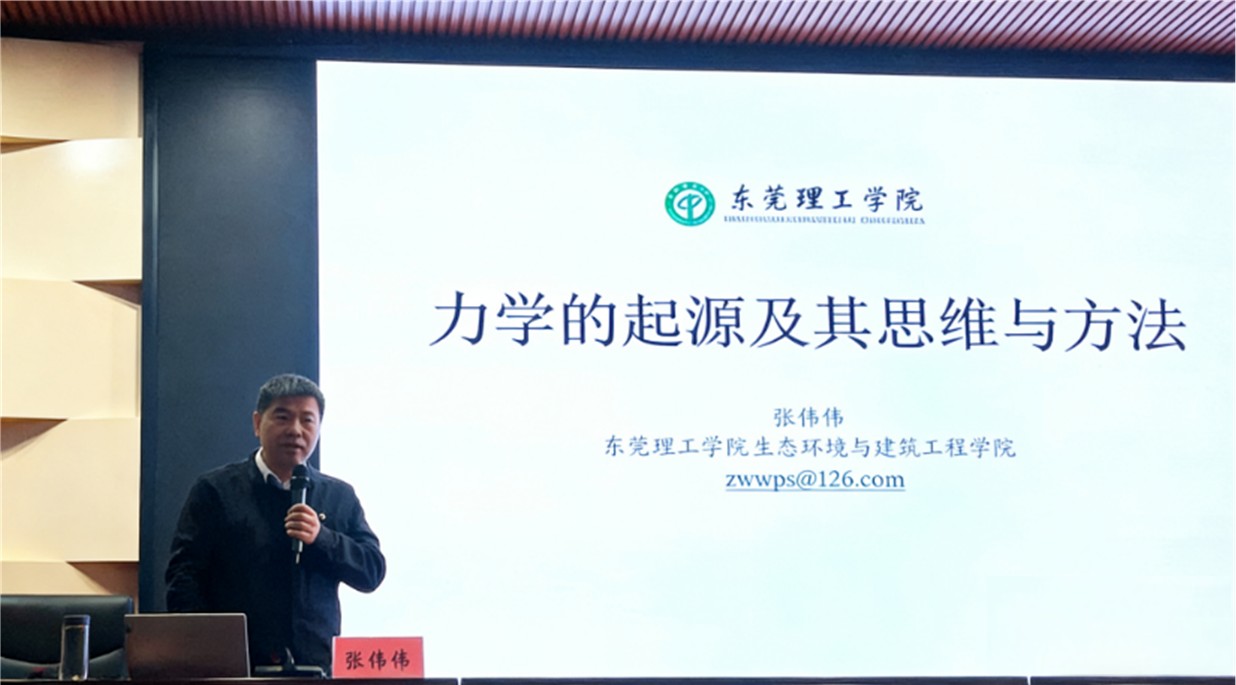12月3日下午,东莞理工学院张伟伟教授在101会议室为我院师生做题目为《力学的起源及其思维与方法》的学术报告。报告会由副院长徐平教授主持,学院工程力学专业2025级学生及部分师生参加了报告会。