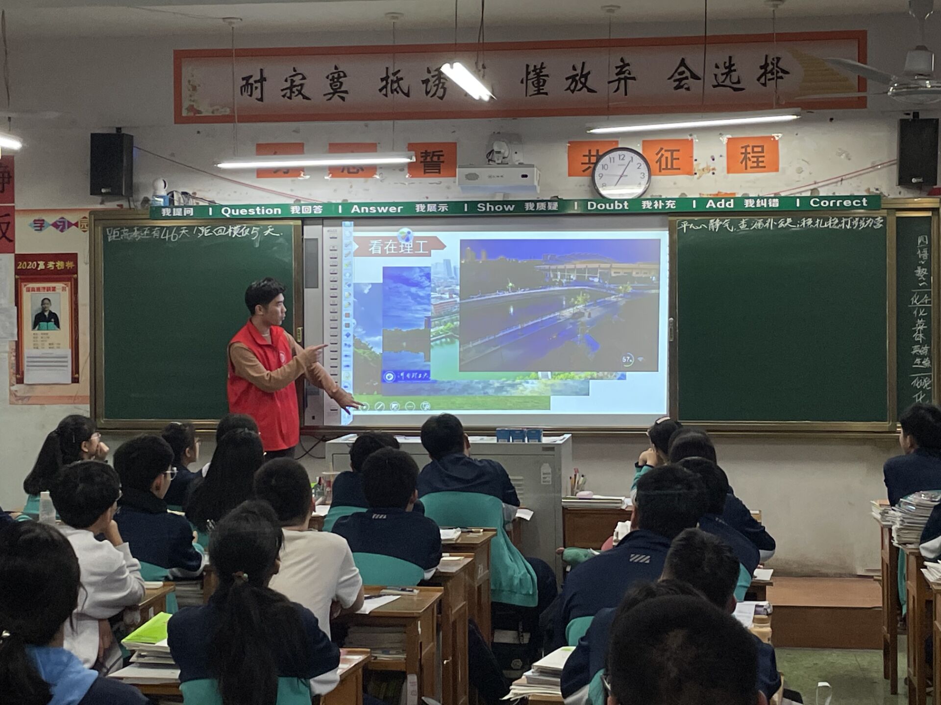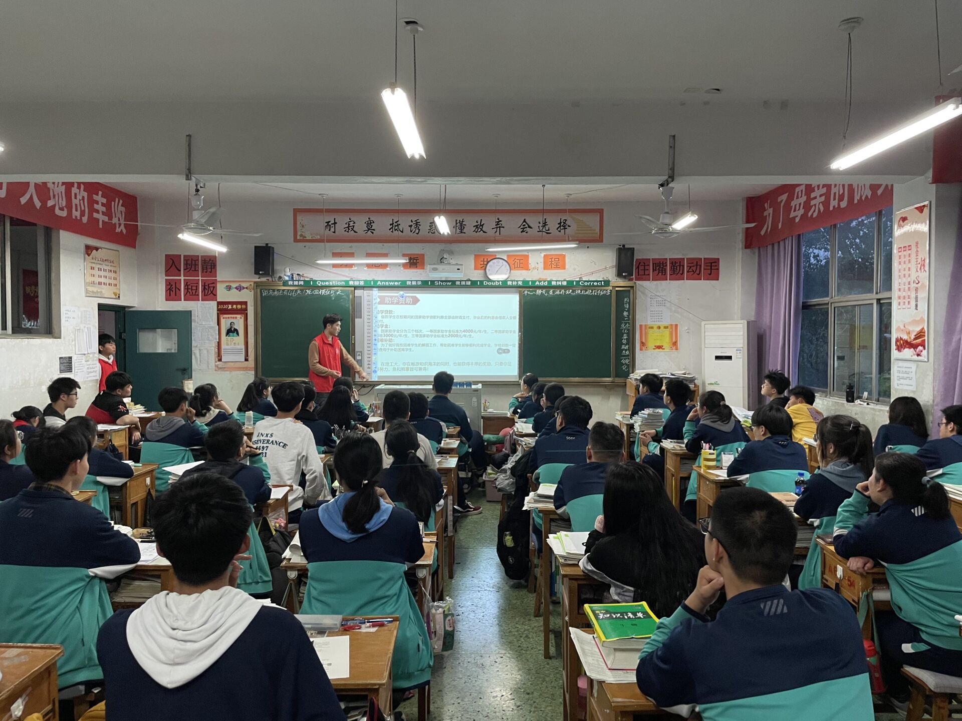 活动伊始,支部书记姜冰将党支部同学分成四小组,各组成员在十一中吴老师的带领下,分别走进高三年级文理科的四个班级开展了高考助力宣讲活动。进入班级,支部的几名准研究生作为讲解员,用幻灯片辅助讲解,从心理、学习、生活作息以及考试答题技巧等方面,为高三学子进行了全方面的讲解与规划,同学们全神贯注,一丝不苟地记录要点。讲解结束后,支部成员们又接着开展了“你问我答”的活动,为同学们解答备考中的疑惑,当同学们问及与河南理工大学的相关问题时,支部成员们播放了河南理工大学宣传视频,通过声音和画面更充分地为同学们展现了理工大的发展历史、办学质量、校园生活和近年高考录取情况等内容。观影之后教室里顿时掌声雷动,一张张稚嫩的脸庞中显露出了对大学美好生活的向往与追求。
