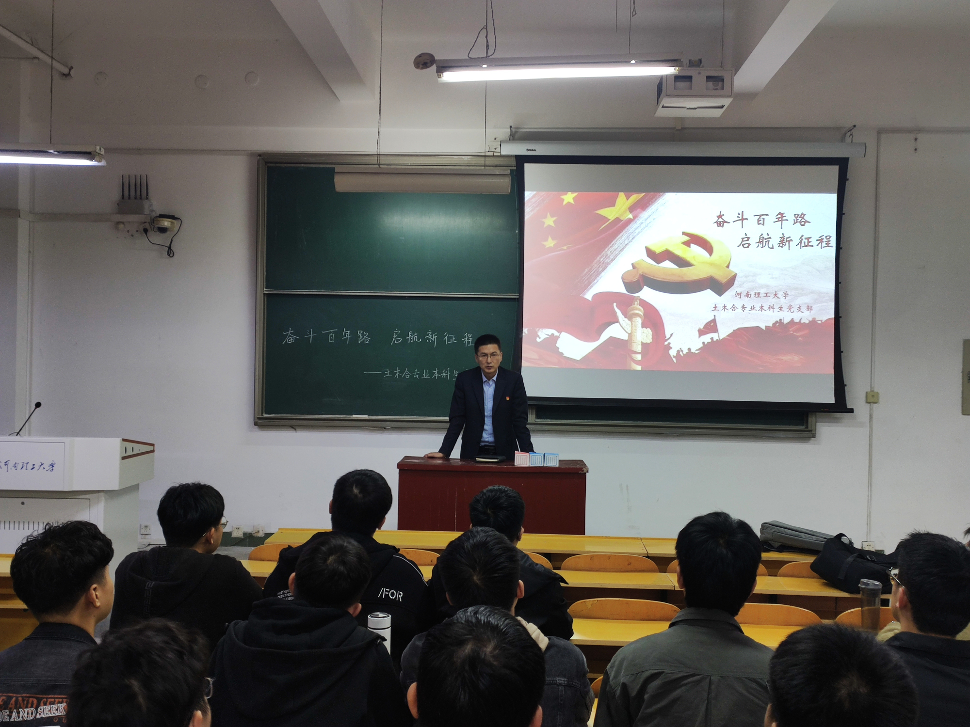 为深入学习贯彻中国共产党河南省第十一次代表大会精神,深入理解习近平总书记在“建党100周年大会”上提出的要求“弘扬光荣传统,赓续红色血脉,永远把伟大建党精神传承下去”,土木合专业本科生党支部2021年11月2日于我院101教室开展“奋斗百年路,彰青春力量”之精诚团结主题教育,活动由党支部书记何军主持,支部全体党员参加。