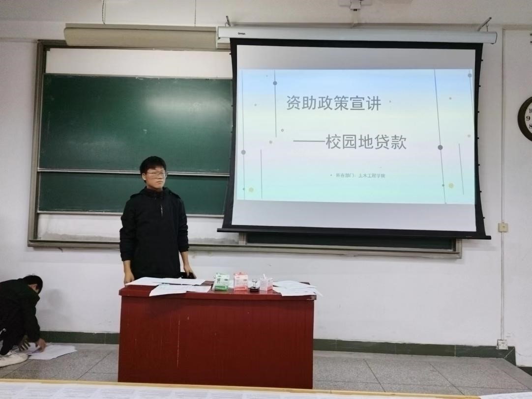 为进一步加大国家资助政策宣传力度,推动我院资助工作高效有序进行。10月17日晚,在我院103室举行2023年度资助政策宣讲会,会议由学院学生贷款专员娄晨海主持,资助专员岳子栋老师、贷款专员张纪云老师、各年级负责人以及近百名参加贷款学生参加了此次活动。