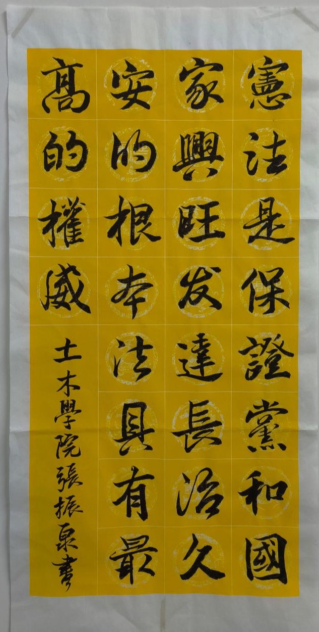 大赛在充分展现我院深厚书法艺术底蕴的同时,有力地弘扬了宪法法治精神、法治意识,为全院师生送上了一道丰盛的法治文化盛宴。我院将进一步加强法治文化建设,加强学生对宪法的学习和理解,使法治精神和法治文化意识深入人心。