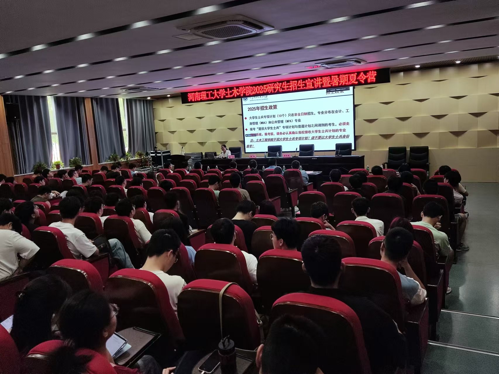 为进一步提高学院硕士研究生生源质量,选拔具有较强创新能力、科研能力和实践能力的优秀人才,8月1日,在学院101学术报告厅线上线下结合举办2025研究生招生宣讲暨暑期夏令营活动。研究生院副院长贺玉晓、土木学院院长钱辉、副院长赵宇,学院教师代表以及来自省内多所高校的200余名学生参加开幕式,开幕式由副院长赵宇主持。