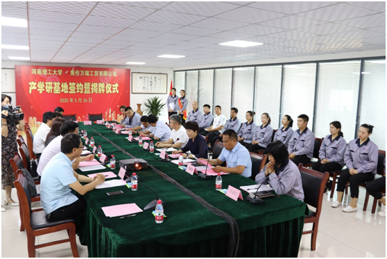 5月26日上午,我院与焦作万瑞工贸有限公司共建产学研基地揭牌仪式在焦作万瑞工贸有限公司举行。武陟县人民政府副县长千宝星,武陟县科工局局长郭凤文、副局长李合恺,焦作万瑞工贸有限公司董事长岳小芳、总经理李现有,我院院长丁亚红、副院长余永强、褚怀保和暖通科研团队相关人员参加了仪式。仪式由郭凤文主持。