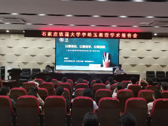 6月14日上午,应我院邀请,石家庄铁道大学工程力学系李皓玉教授在我院101报告厅作了题为《以赛促改、以赛促学、以赛促教——全国高校教师教学创新大赛心得与体会》的专题报告。报告由副院长赵宇主持。