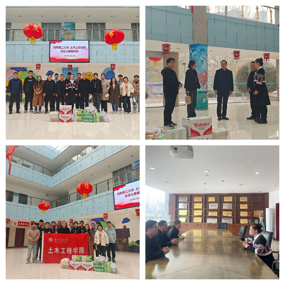 2025年3月11日,土木工程学院党委组织前往焦作市儿童福利院,开展主题为“关爱孤残儿童,传递温暖力量”的慰问活动,用实际行动为孩子们送去温暖与关爱,践行社会责任。学院党委书记常玉光、副书记杨波,教工及学生党员代表参加此次慰问活动。
