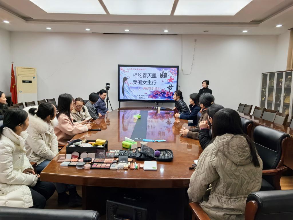 为提升女教工职业妆容形象,展现高校知识女性风采,展现女性独有的风采与魅力。3月5日下午,学院工会为全体女教职工举办了一场精彩的职场女性化妆技巧专题讲座。讲座由化妆纹绣培训高级讲师董娟老师主讲。董娟老师先从如何选择适合自己的化妆品及化妆步骤等方面进行了详细介绍。接着,她选择一名女教工进行现场示范,详细讲解了职场妆容的打造过程,包括底妆、眼妆、唇妆等方面的技巧。讲座现场气氛热烈,女教职工积极参与互动,不断向老师请教,学到了很多实用的化妆技巧,对于提升自己的职业形象有很大的帮助。