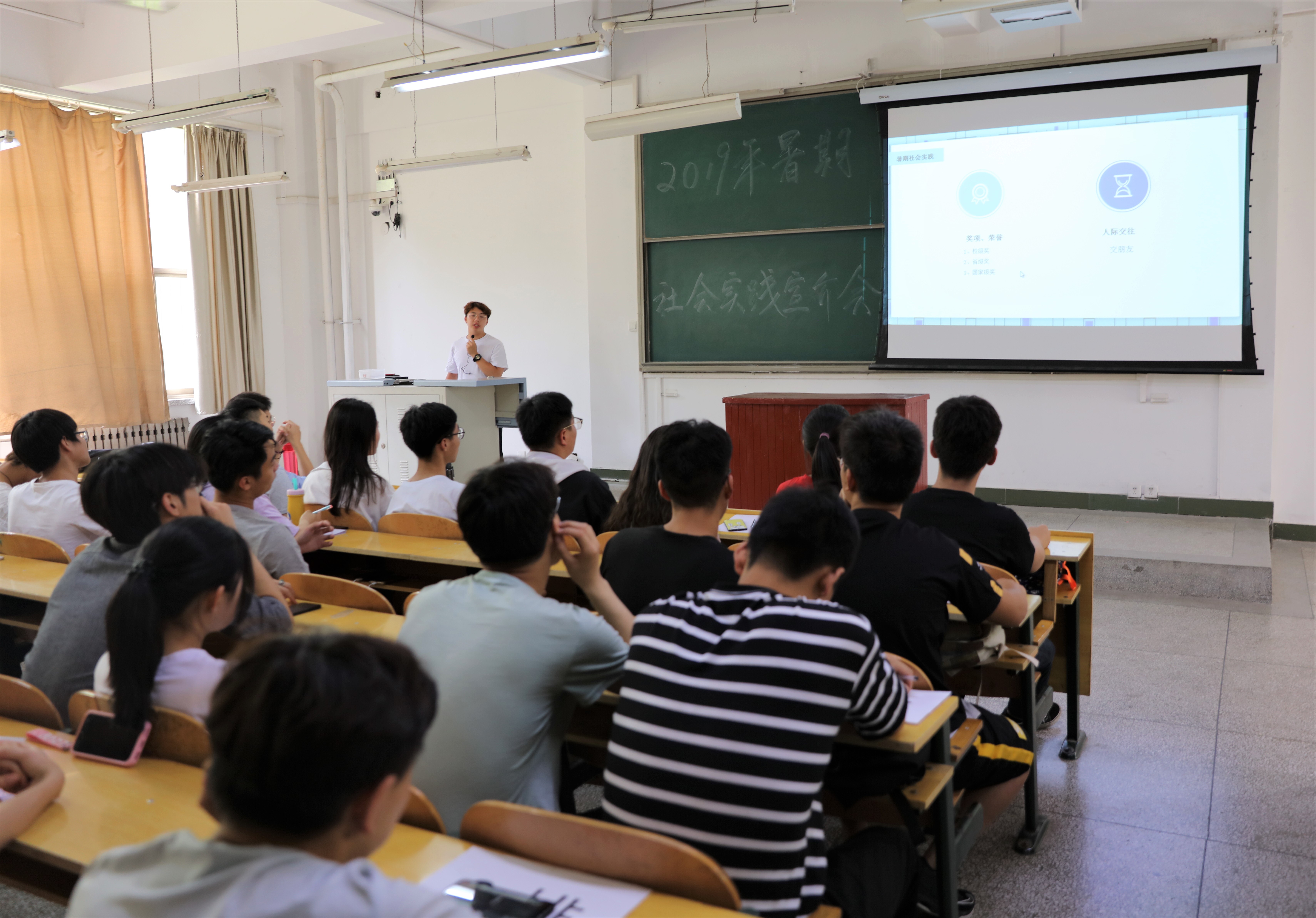 为了让我院学生全面了解暑期社会实践,充分调动同学们参与实践的积极性,5月28日,我院学生会在院团委的指导下召开2019年暑期社会实践宣介会。院团委书记李壮文,2017级、2018级各班班长、团支书参加本次会议。