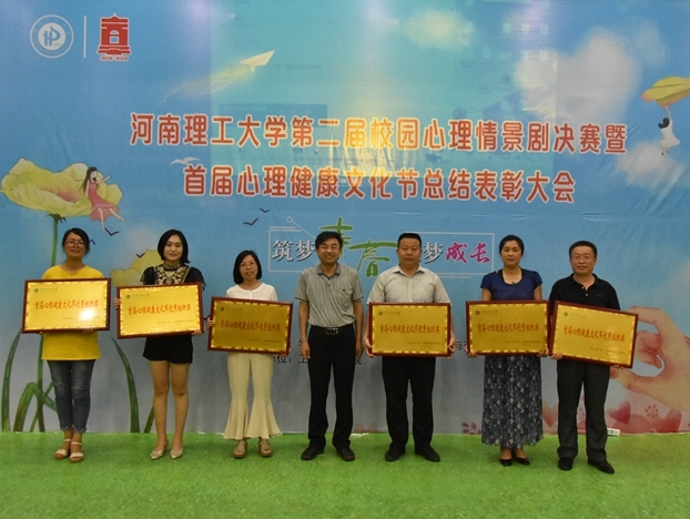 颁奖典礼中,公布了本届心理健康文化节获奖情况,我院喜获多项佳绩。“抖”出青春,“音”动理工活动中,7人获一等奖、17人获二等奖、36人获三等奖;校园心理情景剧大赛中,作品《怪物》获优秀奖;大学生心理健康微课大赛中,作品《情绪调节-做情绪的主人》获二等奖、《人际交往》获三等奖;“一心一世界”征文比赛中,2人获一等奖、2人获二等奖、3人获三等奖;心理漫画创意大赛中,3人获二等奖、3人获三等奖、2人获优秀奖;心理健康知识竞赛中,1支队伍获二等奖、2支队伍获优秀奖;我院所承办的“抖”出青春,“音”动理工活动获得了首届心理健康文化节优秀组织奖。颁奖典礼上,校党委副书记安士伟为我院心理辅导站“阳光小筑”进行了授牌。