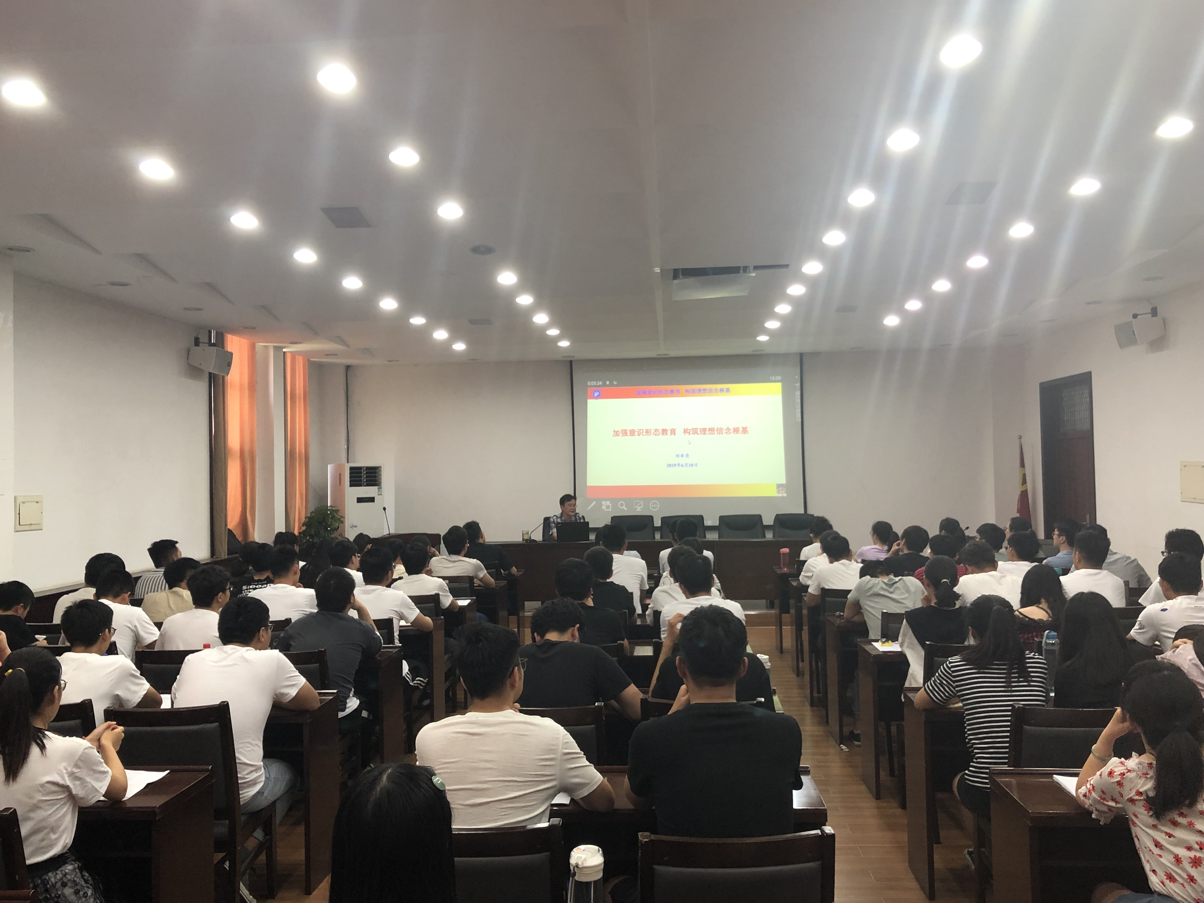 为深入贯彻习近平新时代中国特色社会主义思想,进一步加强毕业生党员教育,引导毕业生党员坚定理想信念,以饱满的热情和昂扬的斗志投身社会, 6月10日,土木学院在一楼学术报告厅举办“加强意识形态教育,构筑理想信念根基”2019届毕业生思政课,学院党委书记刘希亮为一百余名毕业生党员上了精彩的一课。