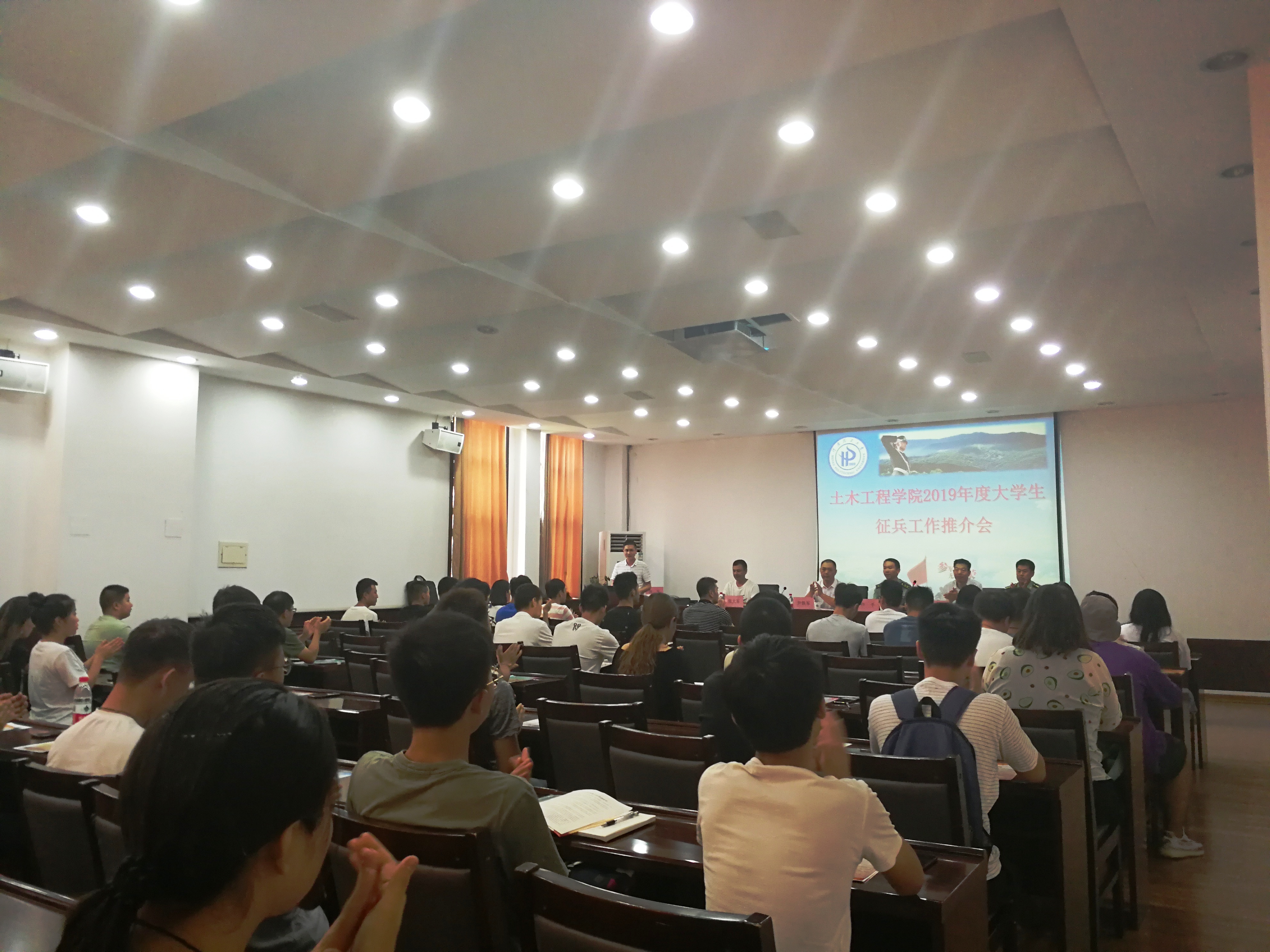 为深入学习习近平新时代中国特色社会主义思想和强军思想,贯彻落实国家、河南省、河南理工大学2019年大学生征兵工作部署,进一步加强和推进征兵工作。7月3日上午,我院在一楼报告厅举办了2019年大学生征兵工作推介会。焦作市解放区武装部副部长卢千、军官陈亚杰,我校武装部副部长王忠、教师张大军,院党委副书记尹铁军出席会议。会议由院学工办主任何军主持,百余名师生代表参加了推介会。 会议伊始,参会人员共同观看了中央军委国防动员部征兵综合版公益宣传片,在场的老师和同学们都被宣传片中浓厚的爱国热情所感染。紧接着,我院退役学生代表高艳裴分享了自己参军入伍的感悟,讲述了入伍生活对于她学习、生活和未来发展的积极影响。随后,卢千从入伍流程、注意事项及大学生应征入伍优惠政策等方面进行了介绍。他紧密结合国家政治、经济等多个方面,强调了大学生参军入伍对国家发展的重要意义。他表示,国家非常需要高学历、高素质的大学生投身部队,为国家建设奉献自我。接着,尹铁军从学院前期在大学生入伍所开展工作等方面表达了对这项工作的重视与支持,设立“大学生应征入伍咨询台”,退役在读学生轮流值班为拟入伍学生答疑解惑;构建“hpu土木入伍学子”QQ群,及时高效传递资讯;室内多彩显示屏定期展播《列兵大学生》影片,室外显示屏循环播放宣传标语。他结合自身经历,鼓励同学们积极入伍,投身军队,实现自身价值,不留遗憾。最后的答疑环节中,同学们踊跃提问,与会领导及老师一一进行了全面详细的解答。 |