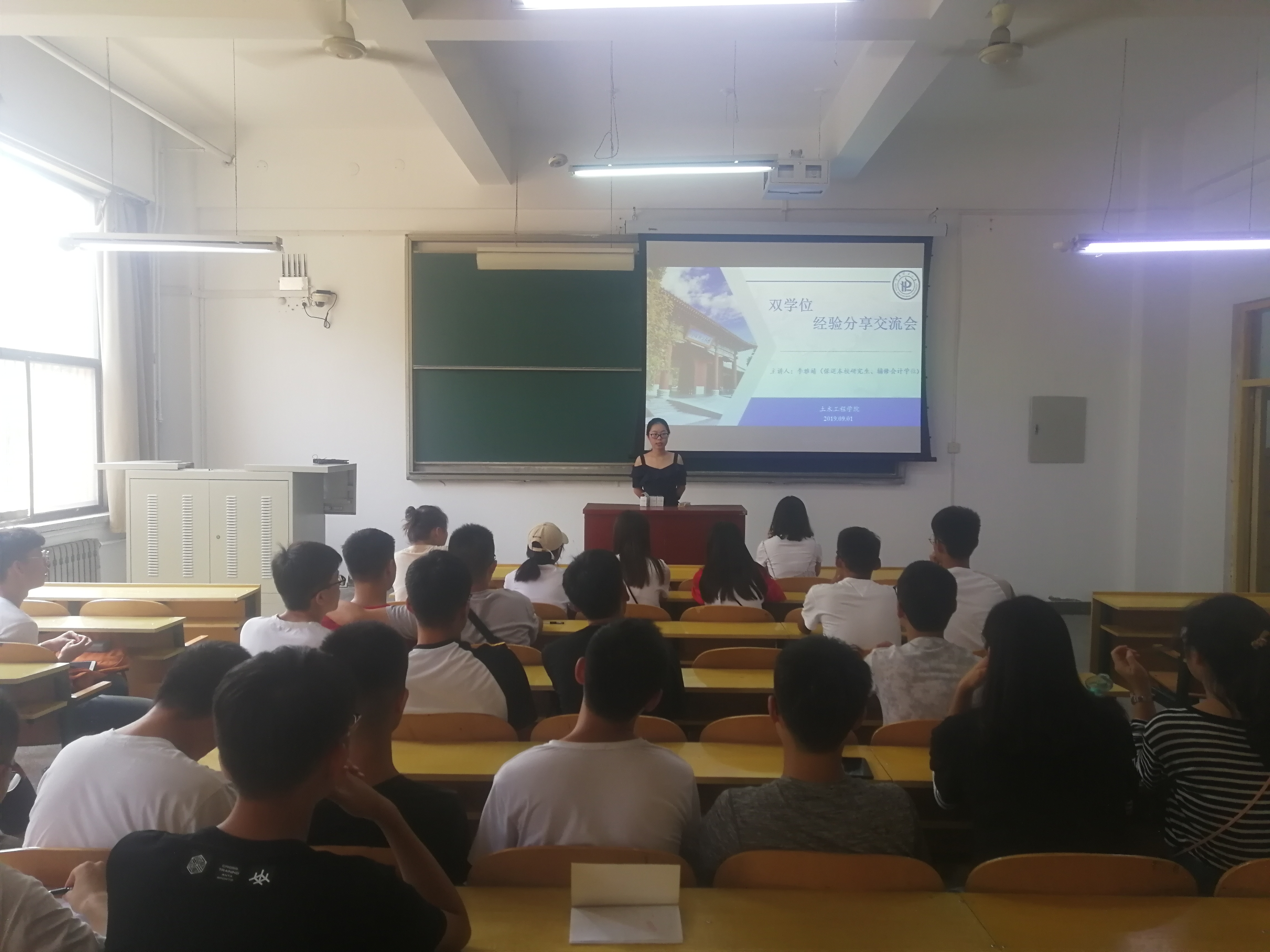 为调动大家学习积极性,以及促进同学们对双学位的全面深入了解,9月1日下午,我院于土木103室举办“双学位经验分享交流会”。此次交流会邀请到了土木学院2015级土木工程(合作办学)专业的李雅婧(保送本校研究生、辅修会计双学位、2017级兼职辅导员)为同学们分享经验、答疑解惑,并与同学们进行深入的交流。