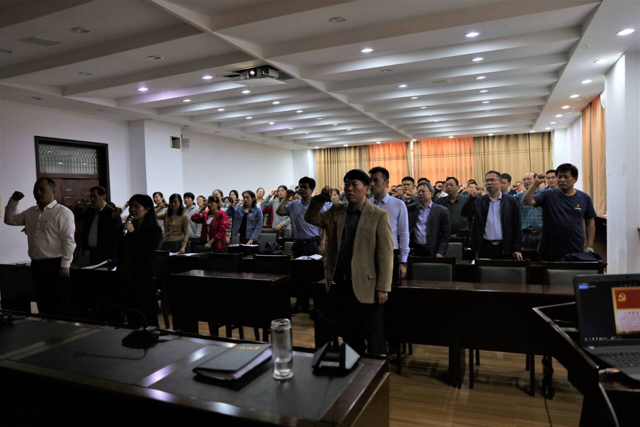 最后,学院全体党员在院长丁亚红的领誓下重温入党誓词,本次大会在庄严的入党誓词声中落下帷幕。