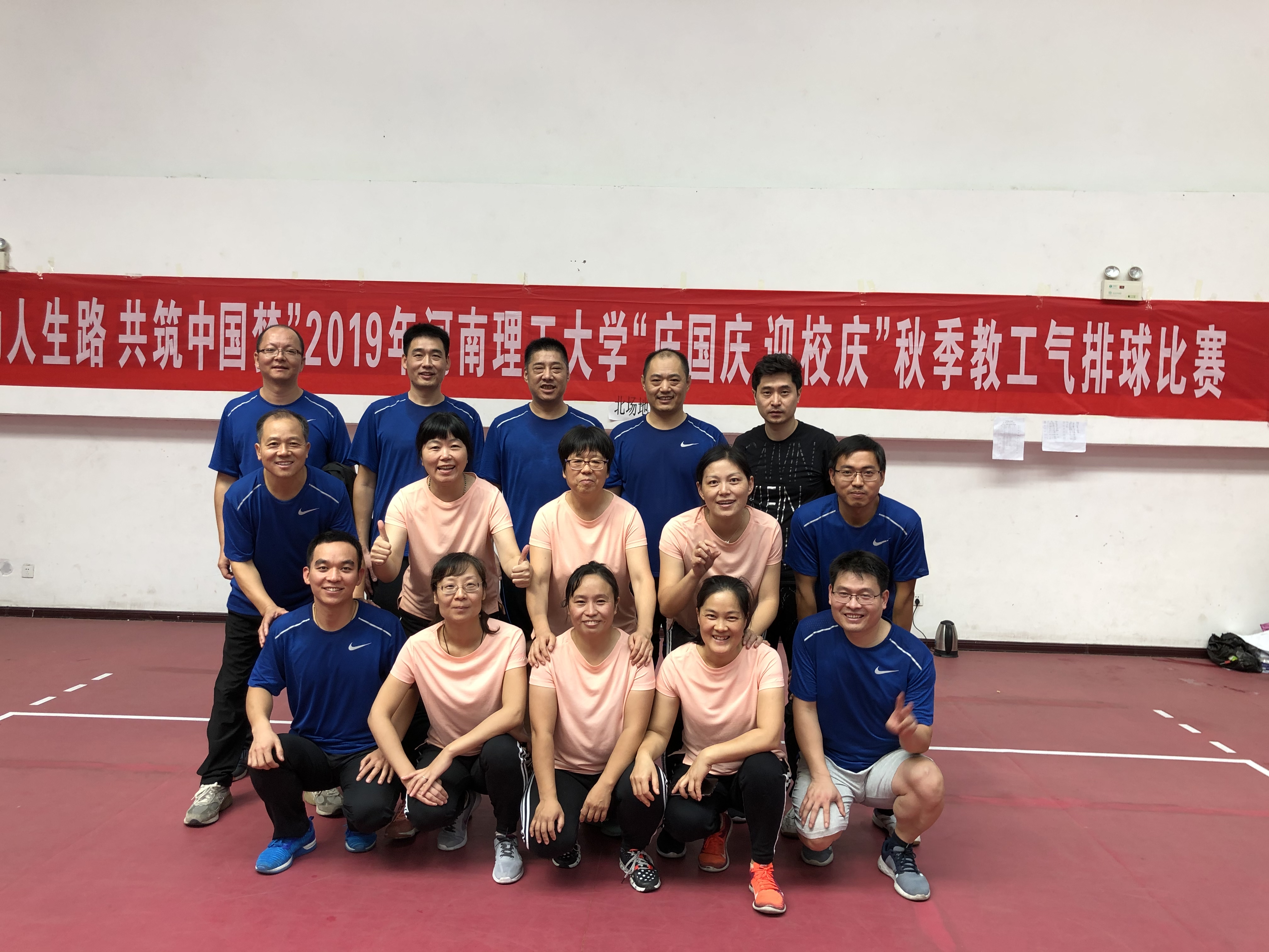 2019年10月9日-13日,“悦动人生路 共筑中国梦”2019年河南理工大学“庆国庆 迎校庆”秋季教工气排球比赛先后在河南理工大学体育馆和焦作市太极体育中心健身馆隆重举行。本次比赛由河南理工大学校工会主办,由河南理工大学气排球协会承办。来自学校各分工会的26个代表队(10支男队、16支女队)、200余名运动员参加了本次比赛。经过四天的激烈角逐,土木学院男子教工气排球队斩获冠军,女子教工气排球队喜获亚军。