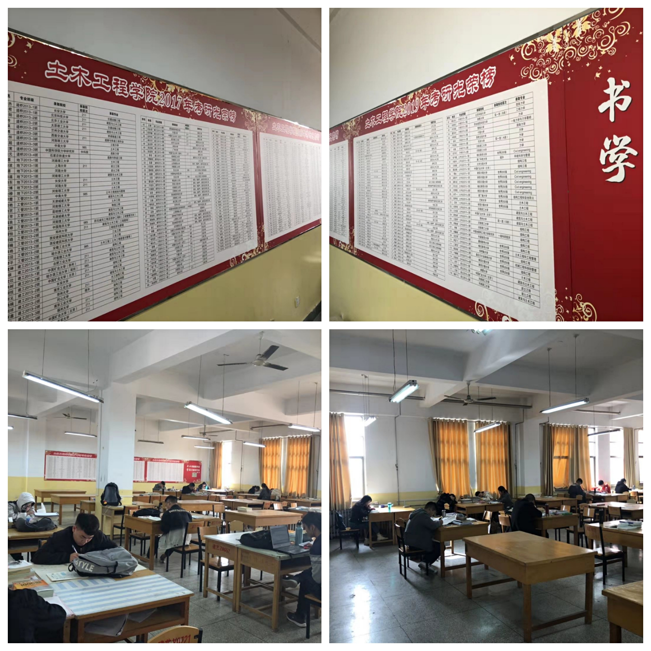 书山有路勤为径,学海无涯苦作舟。为了能让同学们更好地投入到考研的准备中,我院在学院楼内开设考研学生学习专用教室,借力榜样“火车头” ,开好考研“复兴号”。 自“不忘初心、牢记使命”主题教育开展以来,我院紧紧围绕学习贯彻习近平新时代中国特色社会主义思想这条主线,认真落实“守初心、担使命,找差距、抓落实”的总要求,学院领导围绕六个方面内容,以“走进师生、服务师生、引导师生”活动为载体,走出机关、走进基层、走入师生深入开展调研,按照“四对照四查找”要求,为师生解难事、办实事、做好事。在围绕解决制约本单位存在的突出问题和师生反映强烈的热点难点问题调查研究过程中,学院领导获悉考研学生在学习场地方面存在诉求,即知即改、立行立改,经多方协调,将学院教室改设为考研学生专用教室。学院班子深入基层,广泛征求师生意见,召开专题会议进行讨论,对考研教室进行总体布局设计、添置桌椅、装饰墙面等。教室内张榜公布了该院近三年考取硕士研究生的毕业生情况,传递榜样的引领力量;80张学习专用桌、200把学习专用椅,整整齐齐的摆放在教室内;学生志愿者对教室卫生进行了彻底打扫,窗明几净。不到一周的时间,考研学生便已陆续进驻学习专用教室,全身心的投入到考研准备中。据悉,我院“结‘网’授渔”育人工作室凝心聚力,共画线上线下“同心圆”,构建了“hpu土木硕博薪火相传”QQ群,历届考取研究生的毕业生线上助力在校考研学子,为他们提供贴心的服务。 |