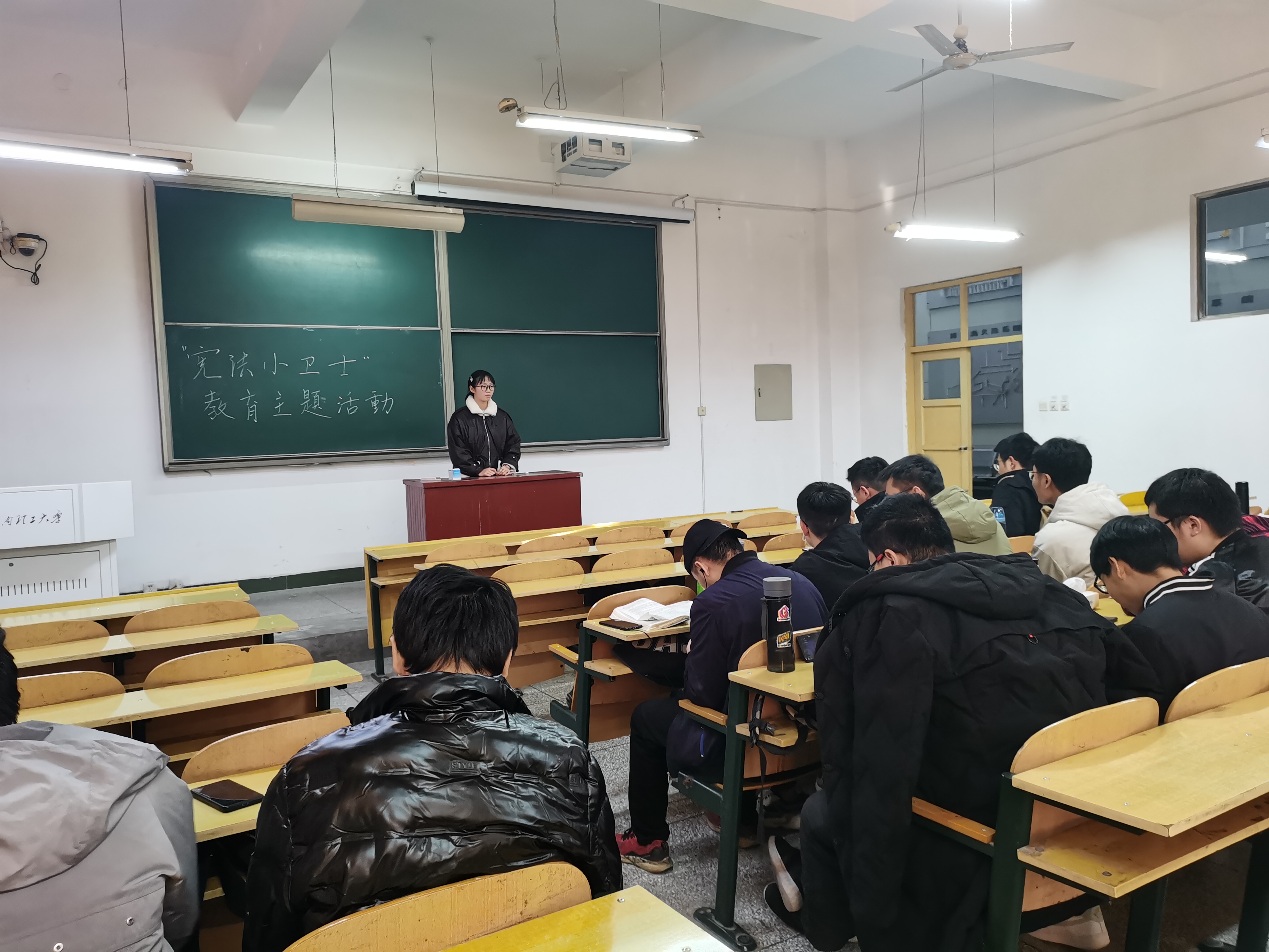 为加强大学生对宪法知识的了解,于2018年10月14日的国家宪法日,事管1801班和事管1802班分别在班级内组织并参与了“宪法知识宣讲”主题教育,为同学们进行了宪法宣传。