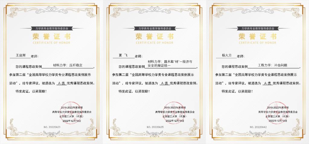 近日,教育部高等学校力学类专业教学指导委员会公布了“关于第二届‘全国高等学校力学类专业优秀课程思政案例展示活动’优秀课程思政案例遴选结果的通知”。经单位推荐,专家评议,本次活动遴选出优秀课程思政案例A类42项,B类34项。我院力学系教师在首届案例评选取得优异成绩的基础上再创佳绩:本次选送的三部作品全部获评A类优秀课程思政案例。该评选活动是教育部高等学校力学类专业教学指导委员会为落实《高等学校课程思政建设指导纲要》和《教育部高等教育司2021年工作要点》等文件精神,推进我国力学类专业课程思政建设,提高高校人才培养质量,在全国范围内开展的“全国高等学校力学类专业优秀课程思政案例展示活动”,对基础力学课程思政教学具有导向性、代表性、引领性。