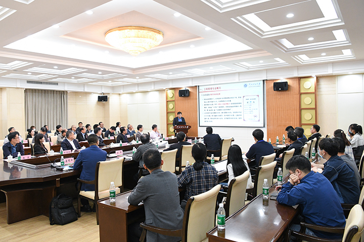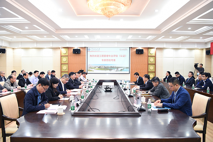 邹友峰致欢迎辞,他表示,开展专业评估(认证),是对高校专业教育的宏观指导和管理,是保证和提高教育质量的重要抓手,真诚希望各位专家对工程管理专业的建设和发展把脉、问诊、开方,指导该专业进一步凝练专业特色,拓展发展思路,改革教育教学方式方法,全面提升人才培养质量。评估(认证)专家组组长刘嘉介绍了专业评估(认证)的目的、意义以及现场考查的要求和工作流程。我院工程管理系主任苑东亮对专业自评情况作了汇报。