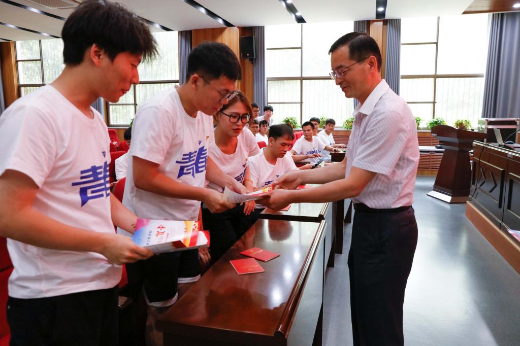 随后,常玉光代表学院党委为毕业生党员发放了一份具有特殊爱意的“信仰大礼包”——一本党章、一面党徽、一张政治生日贺卡、一封离别信和一份组织关系转接温馨提示。这份礼物旨在强化党员的意识和信仰,同时也是对即将离开校园的最后一次关怀。这份礼物让毕业生党员感受到了组织和集体的温暖,也成为他们人生中的珍贵回忆,提醒他们继续坚持党的信仰和宗旨,在未来的道路上继续前行。