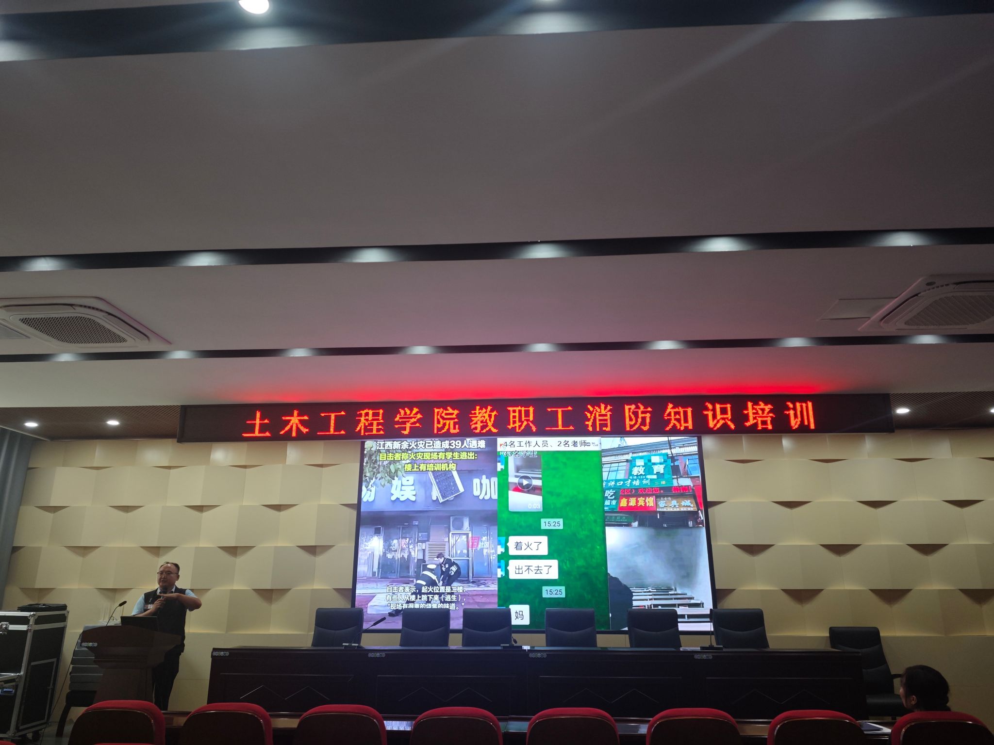 为进一步加强全院教职工的消防安全意识,提高应对火灾等突发事件的能力,10月15日下午,在土木楼101会议室举办了消防知识讲座。讲座由河南省消防协会消防科普宣传服务队专职教员吕南主讲,此次讲座得到了全院教职工的积极响应和热情参与,讲座由我院党委副书记杨波主持。