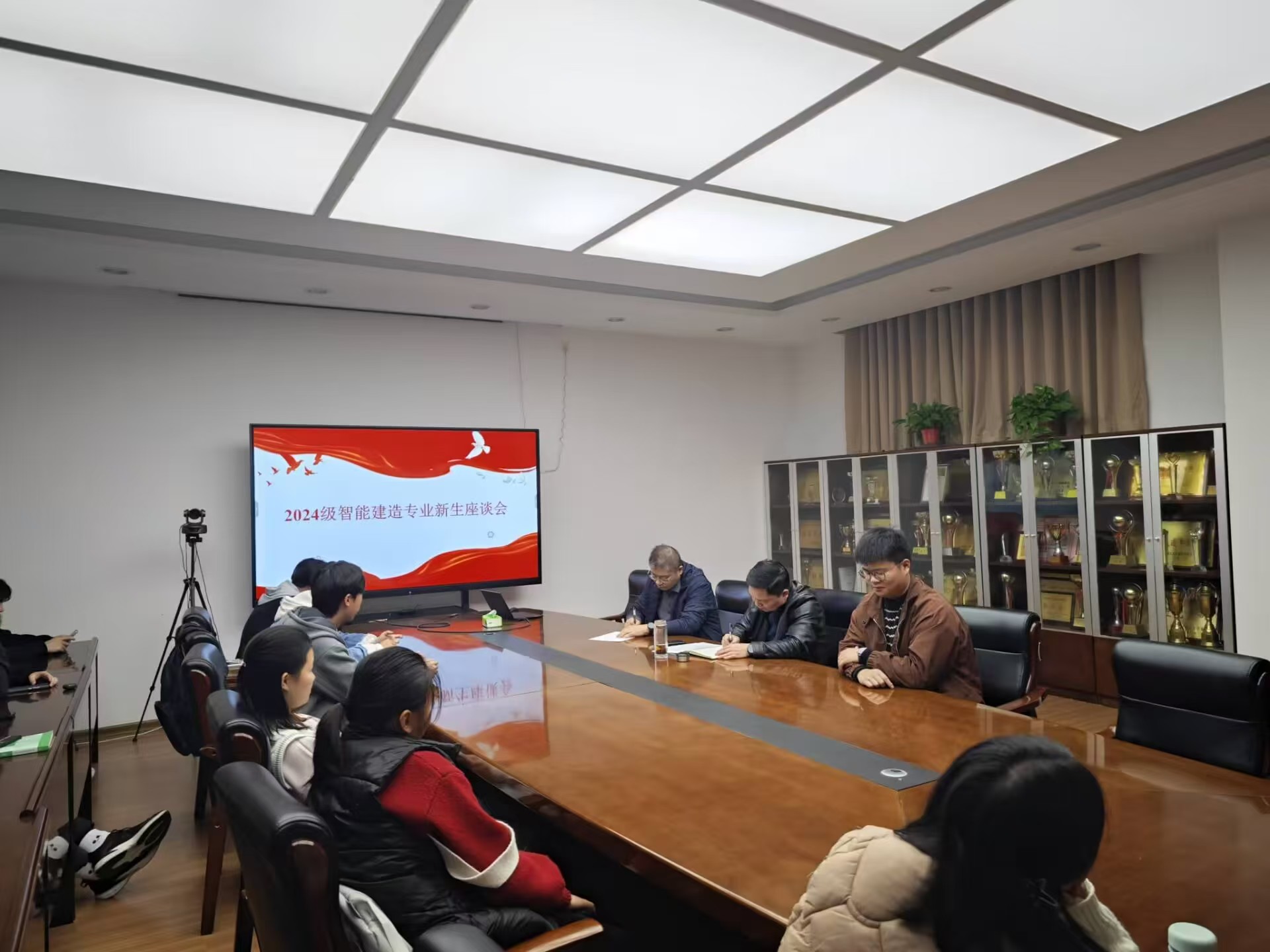 为加强我院领导与2024级本科新生之间的交流联系,助力新生尽快适应和融入大学生活,11月14日下午,学院院长钱辉及学业导师牛海成同智建2024-1班全体学生在学院二楼会议室开展座谈会。