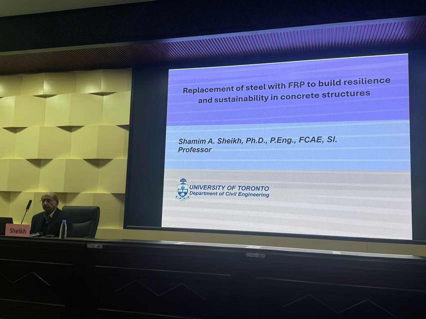 11月19日,加拿大工程院院士Sheikh教授应邀为我院教师和研究生做了题为“Replacement of steel with FRP to build resilience and sustainability in concrete structures”的学术报告。报告在学院101报告厅召开,由院长钱辉主持。
