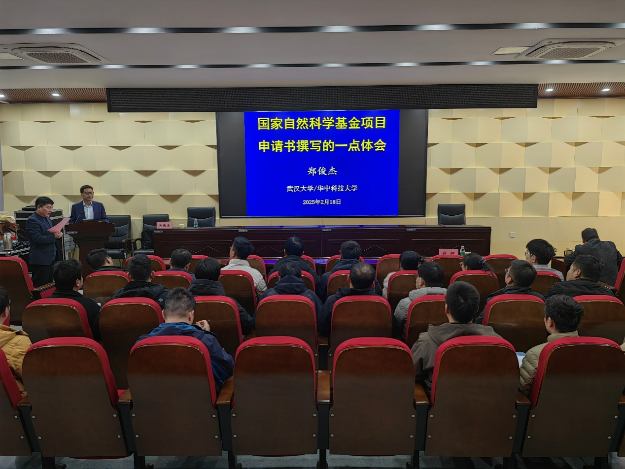 2月18日下午,武汉大学/华中科技大学郑俊杰教授应邀在学院101会议室为我院部分教师作了题为《国家自然科学基金项目申请书撰写的一点体会》的专题辅导报告,报告会由我院院长钱辉主持。
