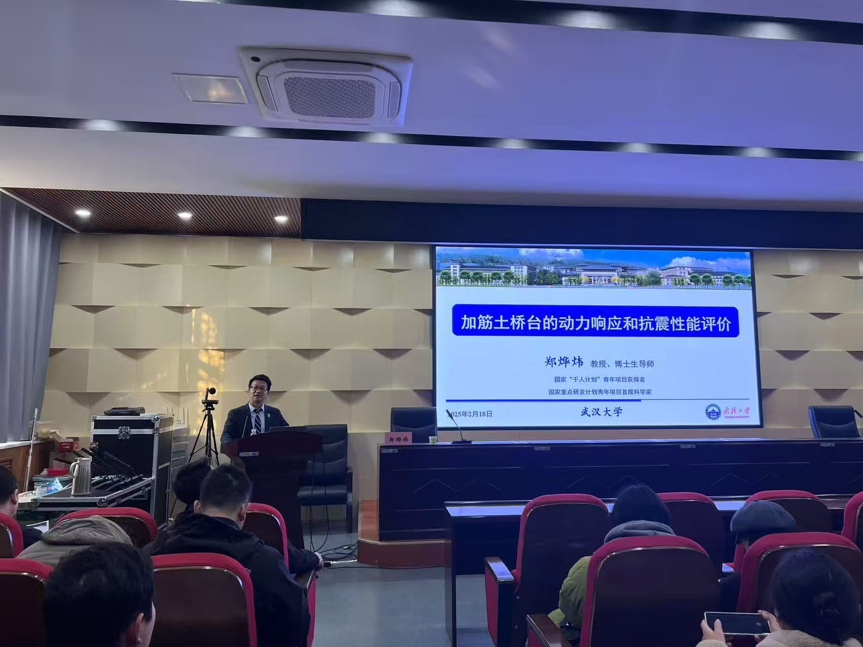 2月18日上午,武汉大学郑烨炜教授应邀在学院101会议室为我院部分师生作了题为《加筋土桥台的动力响应和抗震性能评价》的学术报告,报告会由我院院长钱辉主持。