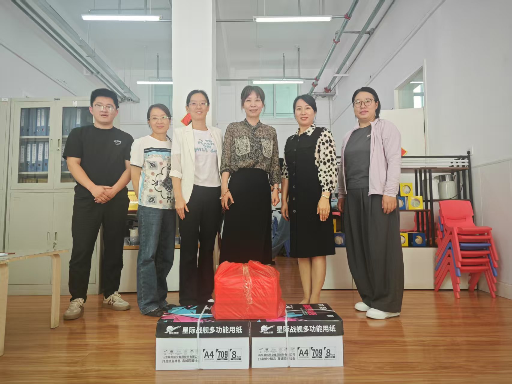 活动现场,我院工会向附属小学和幼儿园捐赠了足球、篮球、画笔、打印纸等文体用品,助力孩子们快乐学习、健康成长。附属小学校长和幼儿园园长对学院的爱心善举表示衷心感谢,并表示这些物资将有效丰富校园文体活动,为孩子们的成长增添更多色彩。杨波表示,儿童是祖国的未来、民族的希望,关爱儿童成长是全社会的共同责任。作为高等教育工作者,我院始终秉承“立德树人、服务社会”的宗旨,不仅在人才培养和科学研究上贡献力量,更积极履行社会责任,关注基础教育发展。此次捐赠不仅是节日的问候,更是对教育事业的支持和期许,希望孩子们在爱的阳光下茁壮成长,早日成为栋梁之才。