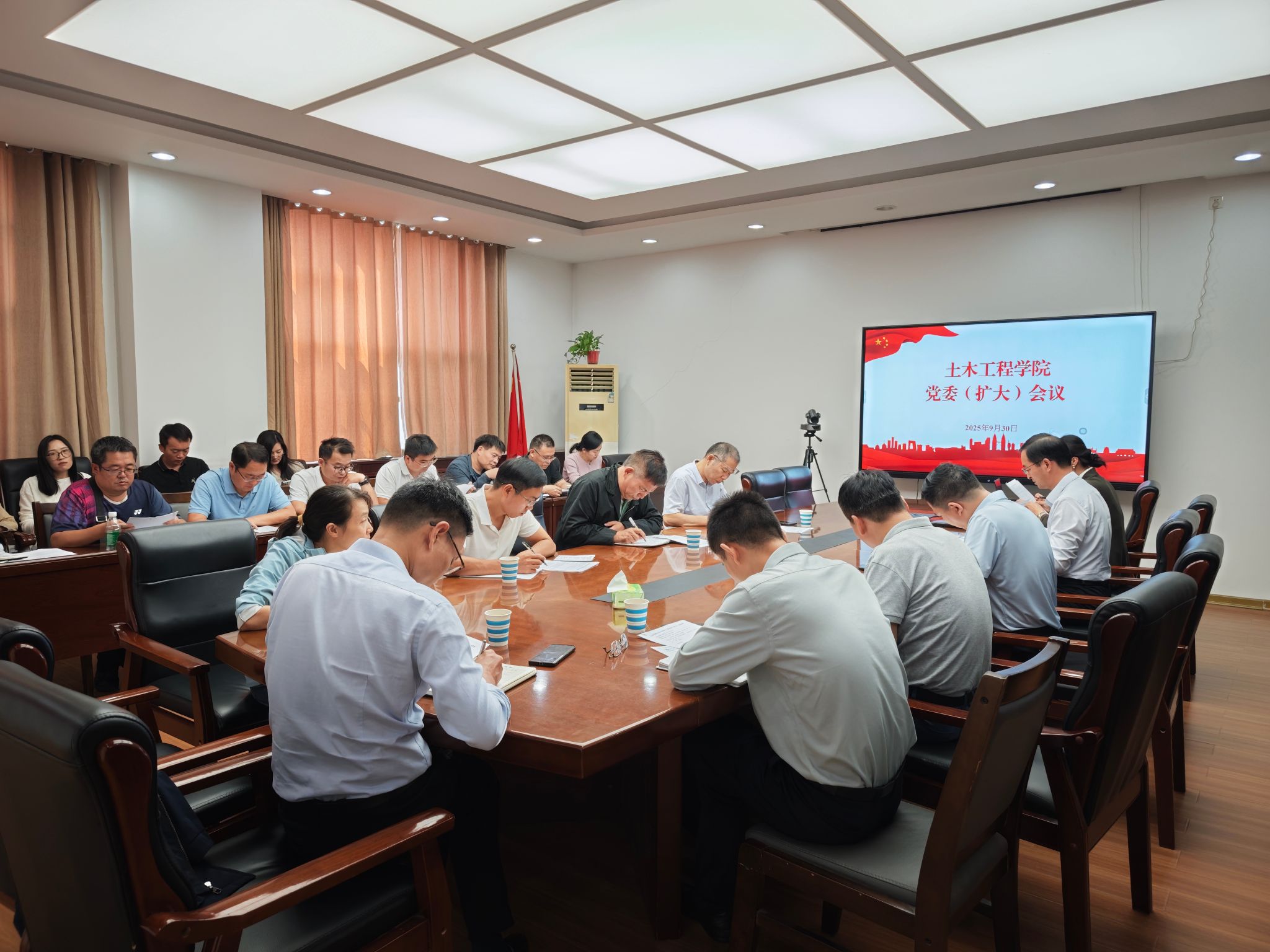 9月30日下午,我院在学院二楼会议室召开党委扩大会议,学院领导、党委委员、各支部书记、科级干部参加会议。会议由学院党委副书记杨波主持。