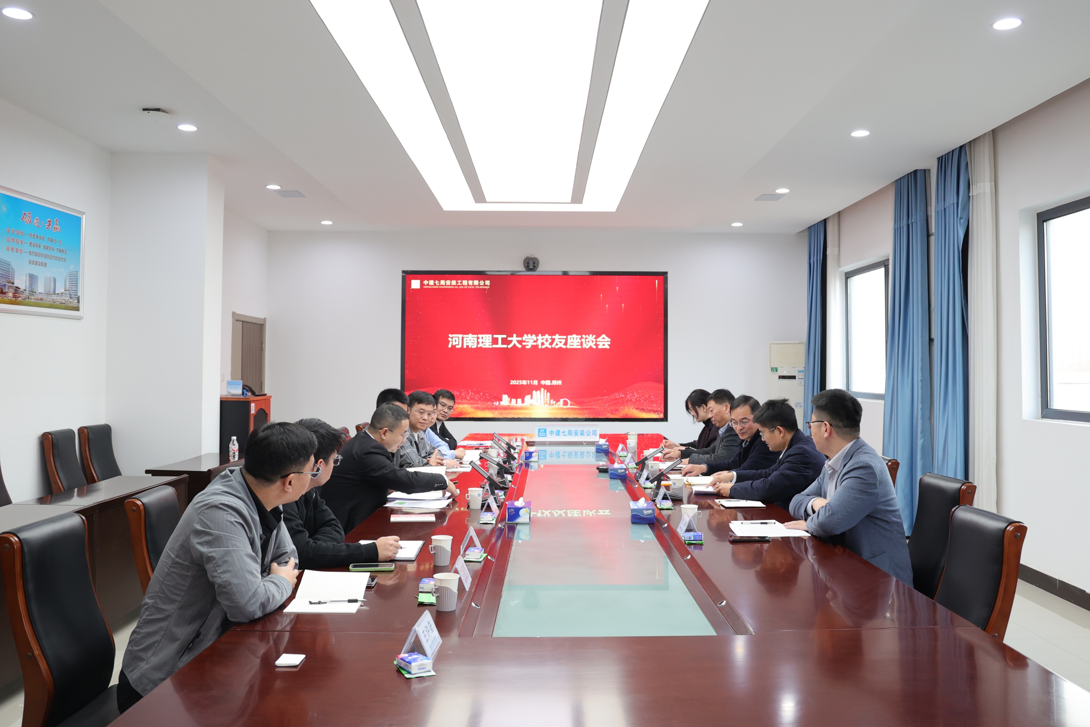 为进一步深化校企合作,凝聚校友力量。11月5日,我院党委书记常玉光、副院长余永强、副院长徐平一行赴中建七局安装工程有限公司开展校友交流活动,10余名在安装公司及郑州工作的校友齐聚一堂,现场气氛热烈而融洽。