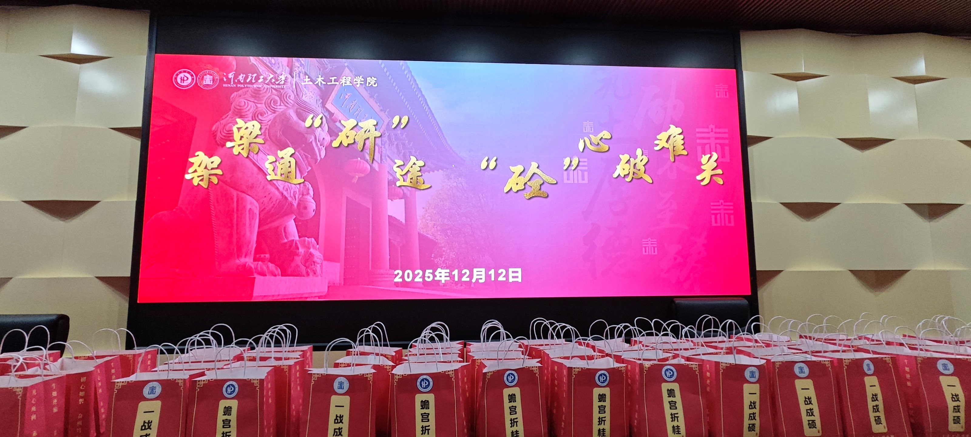 寒潮渐深,研考在即。在2026年全国硕士研究生招生考试进入冲刺决胜阶段之际,为切实鼓舞学子士气、缓解考前压力,12月12日下午土木学院在学院学术报告厅101隆重举行“架梁通‘研’路·‘砼’心破难关”助研活动,为即将奔赴考场的考研学子送上专属温暖与硬核助力。