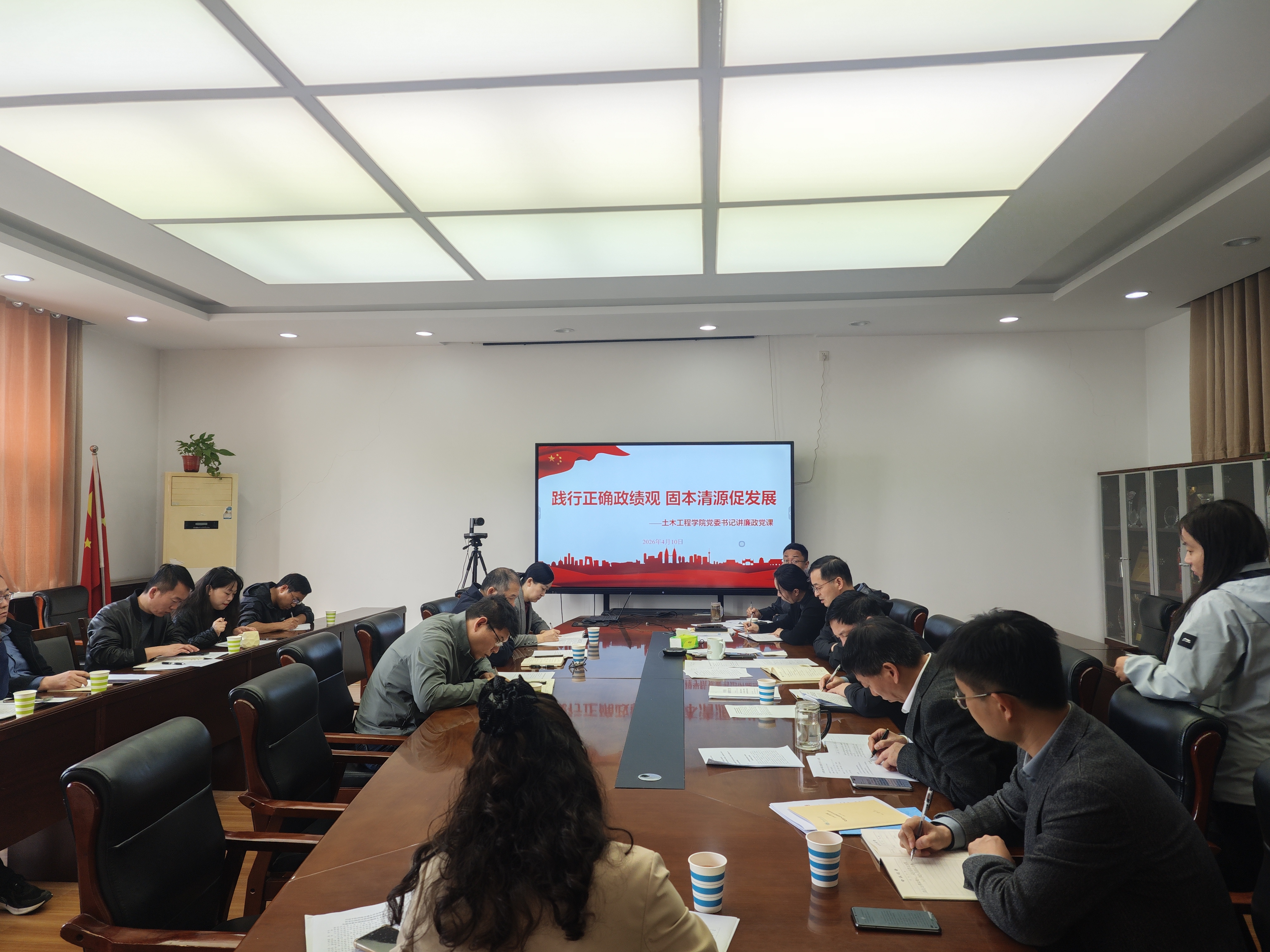4月10日上午,我院党委书记常玉光在学院二楼会议室以“践行正确政绩观,固本清源促发展”为主题讲授廉政党课,学院领导、党委委员、支部书记共计20余人聆听了本次党课。